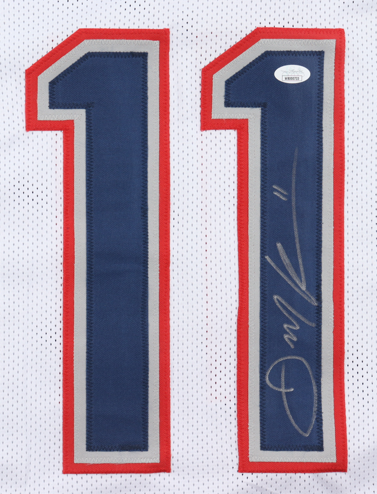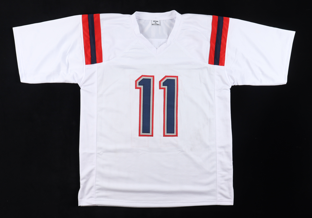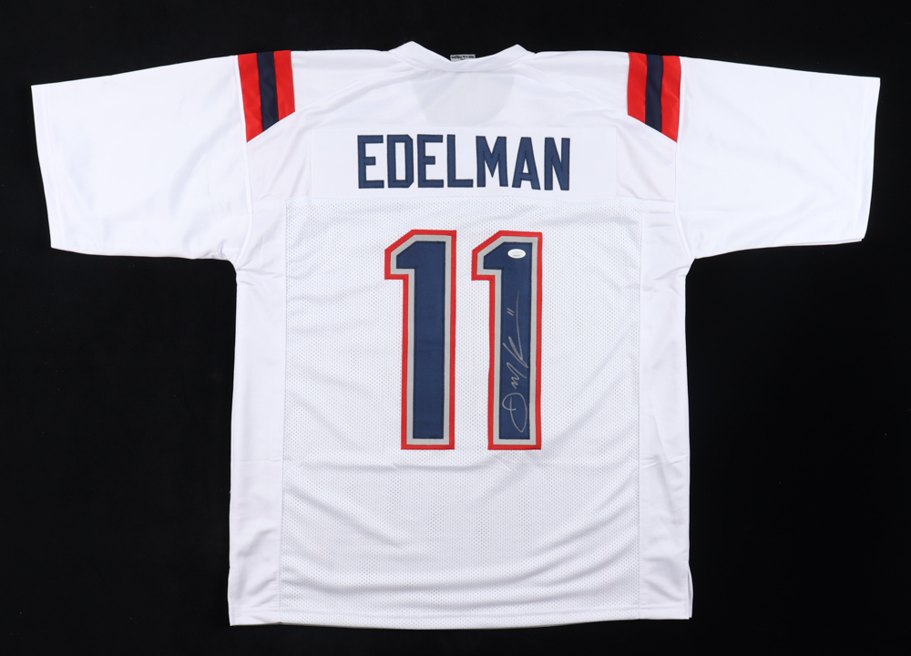 Custom jersey. Everything is sewn on, size XL. Hand-signed by Julian Edelman. Please note, the front side of the jersey is stained.