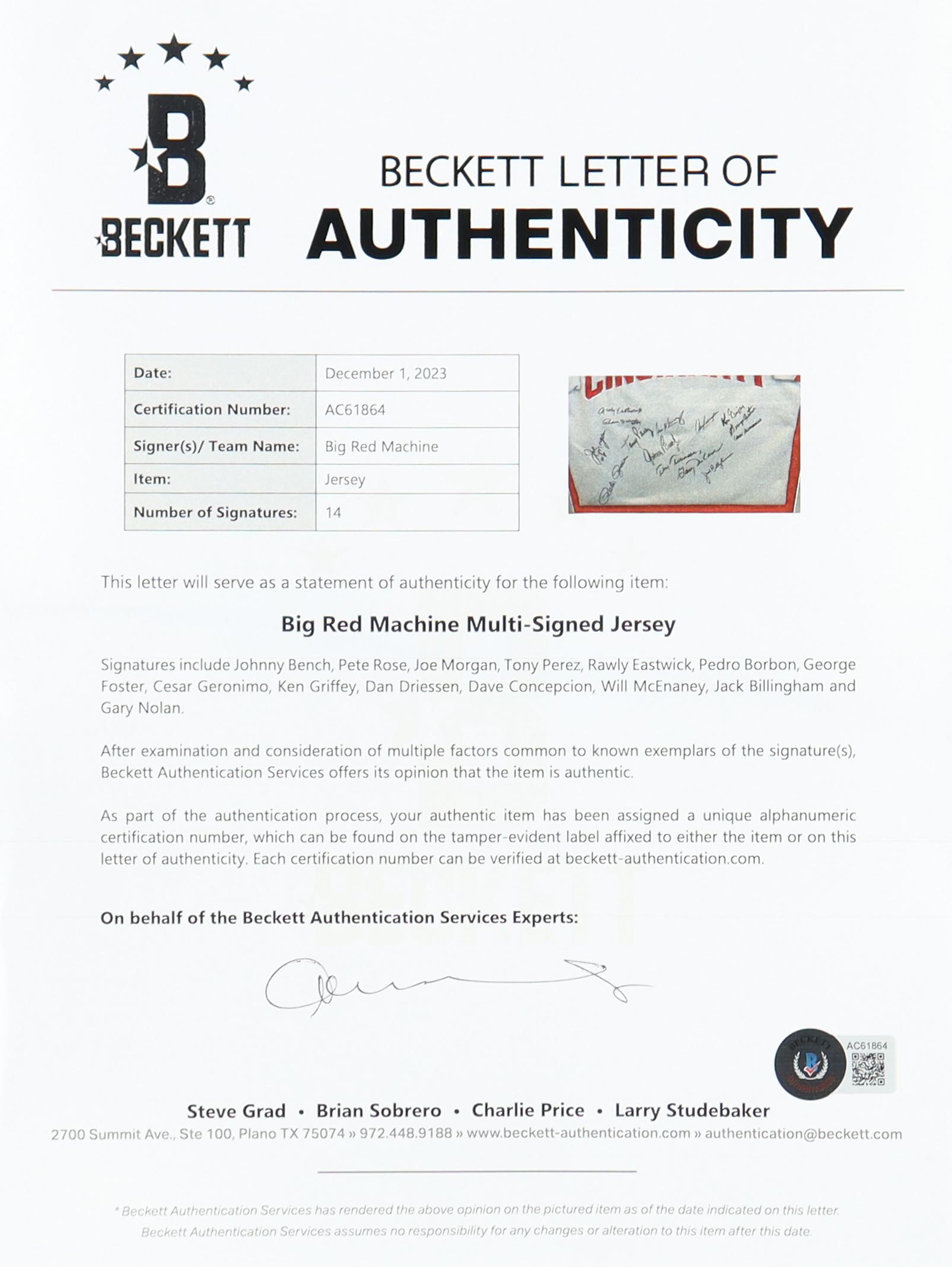 "Big Red Machine" Custom Framed Jersey Display Signed by (14) with Johnny Bench, Pete Rose, Joe Morgan, Tony Perez, George Foster (Beckett)