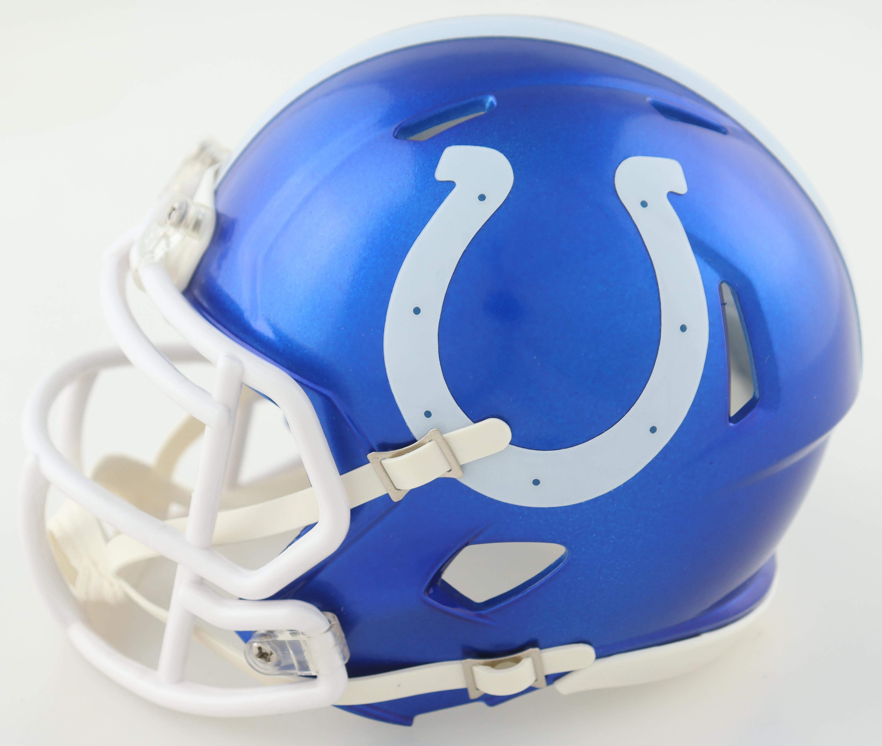 Riddell Indianapolis Colts Flash Alternate speed mini helmet. Hand-signed by Josh Downs.
