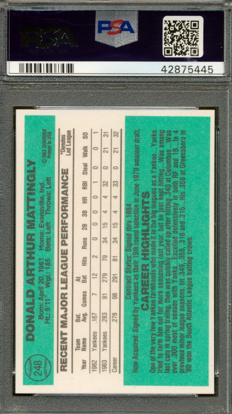 Don Mattingly Signed 1984 Donruss #248 RC (PSA 8 | Autograph Graded 10)