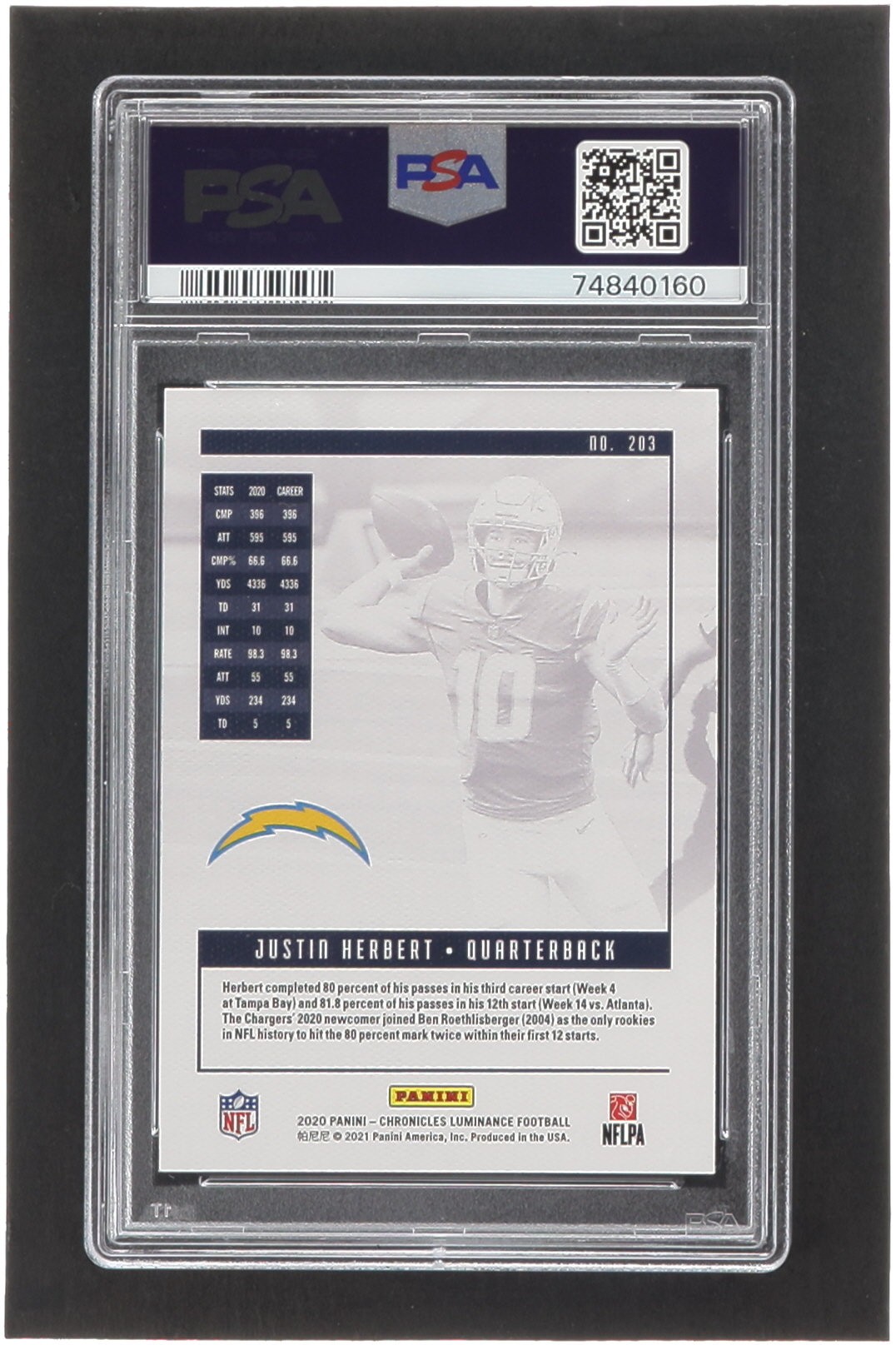 Justin Herbert 2020 Panini Luminance #203 RC / CHRONICLES (PSA 10)