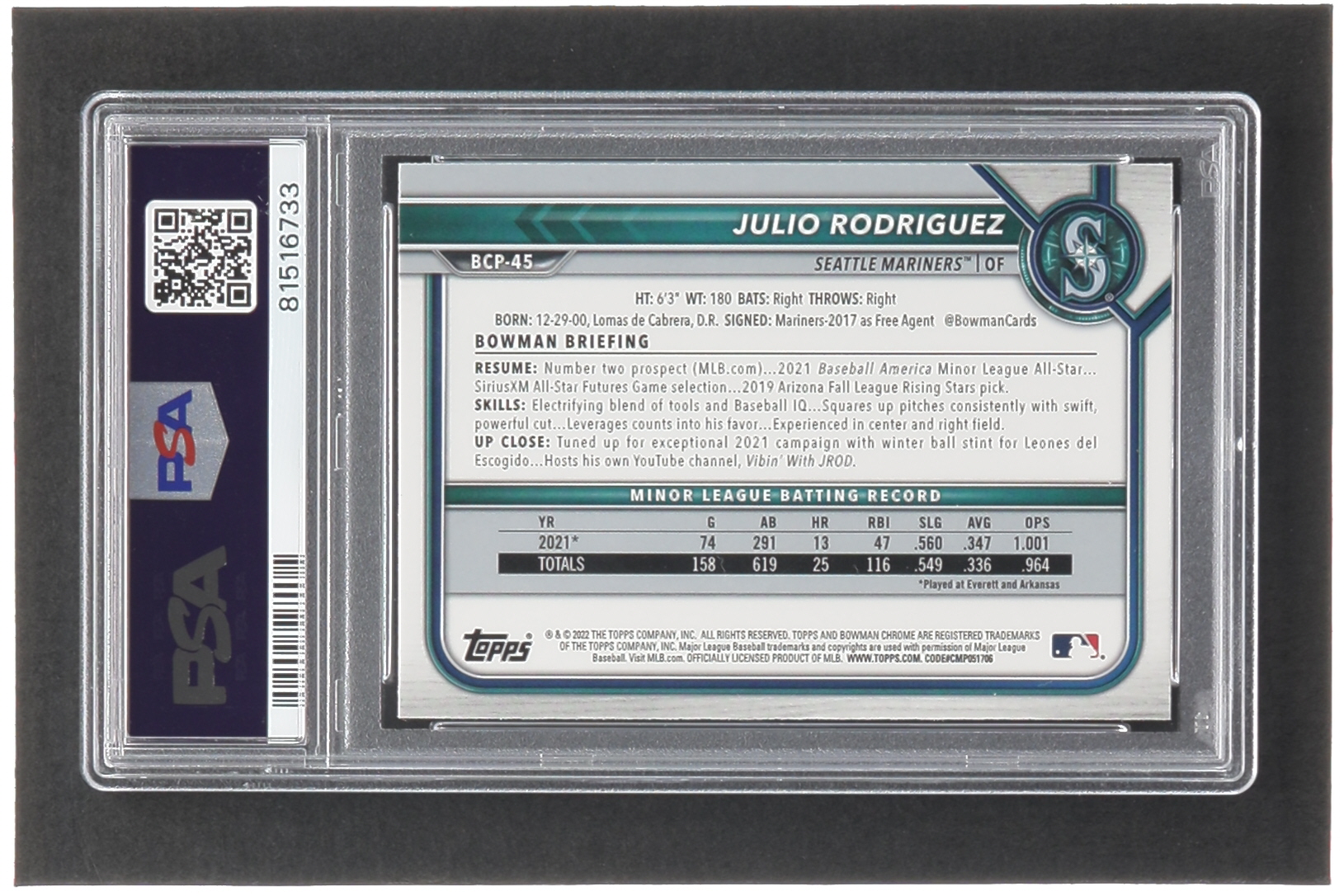 Julio Rodriguez 2022 Bowman Chrome Prospects #BCP45 RC (PSA 9)