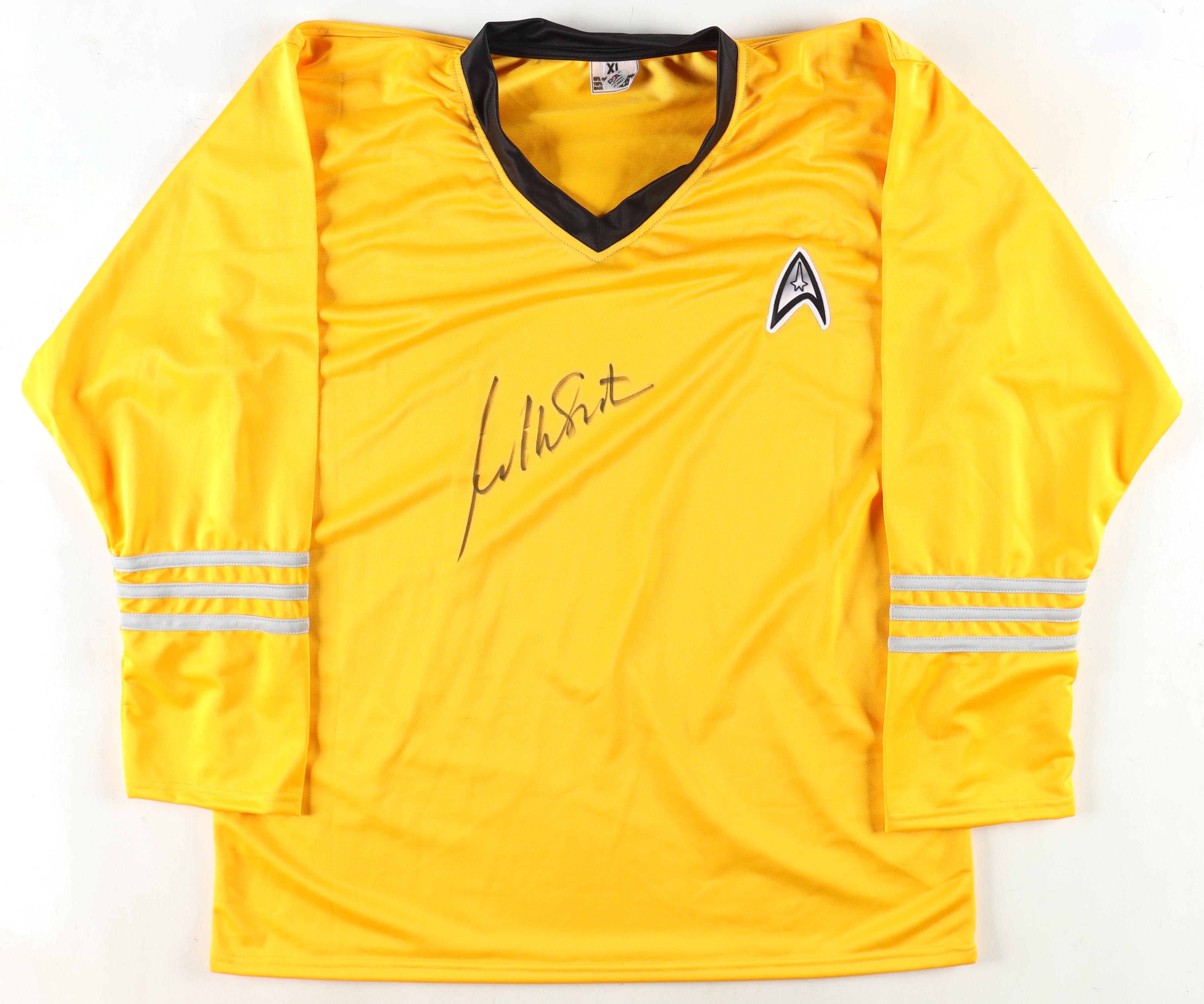 Replica "Star Trek" uniform has been hand-signed by William Shatner.