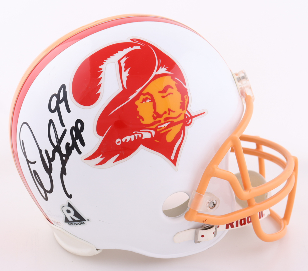 Riddell Tampa Bay Buccaneers full-size replica helmet. Hand-signed by Warren Sapp (HOF).