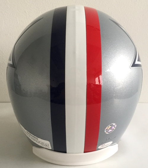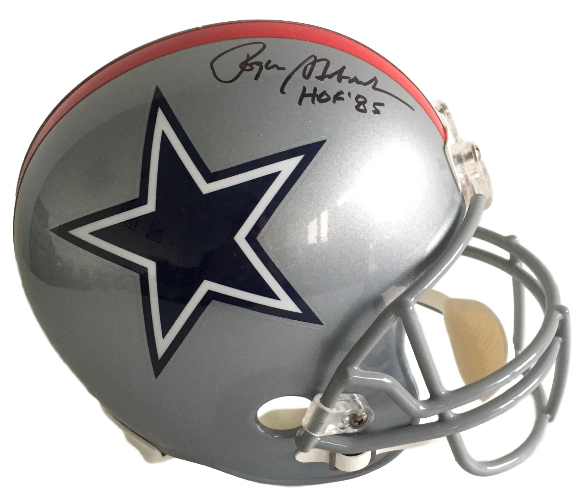 Cowboys full-size replica helmet has been hand-signed in black felt-tip pen by Roger Staubach (HOF).