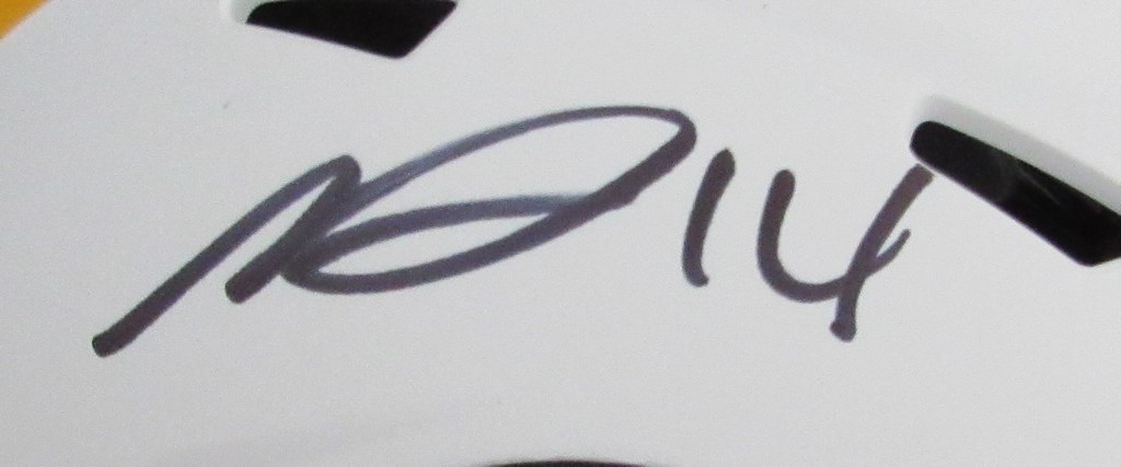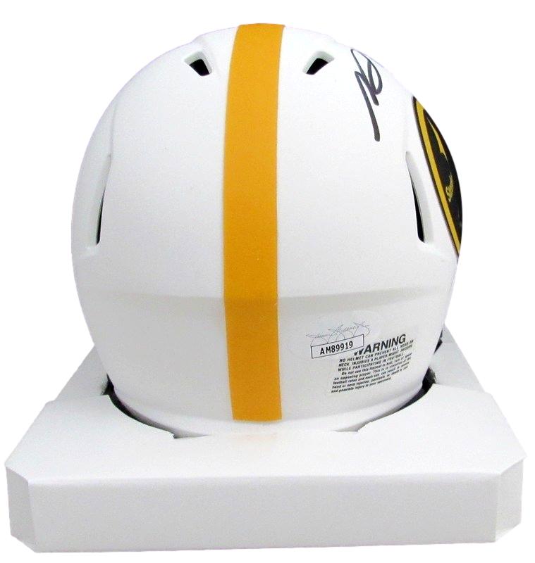 Riddell Pittsburgh Steelers Lunar Eclipse Alternate speed mini helmet has been hand-signed by George Pickens.