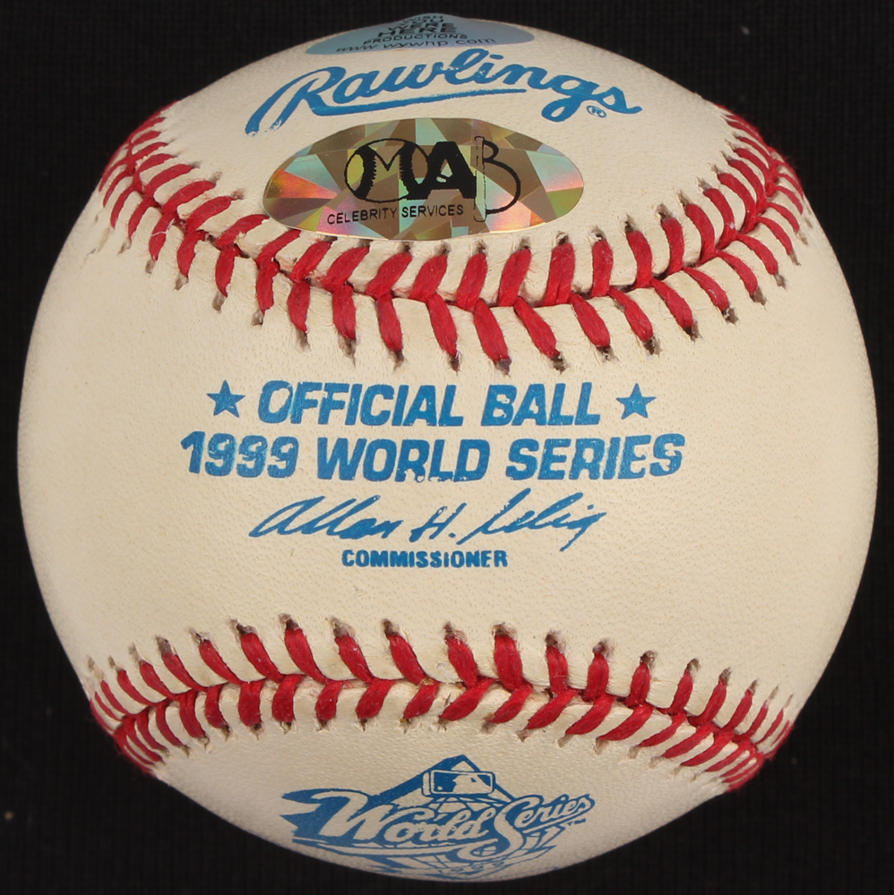 Rawlings Official 1999 World Series Baseball. Hand-signed in blue ink pen by David Cone (Yankees). Please note ball is showing signs of toning, please see photos for details.