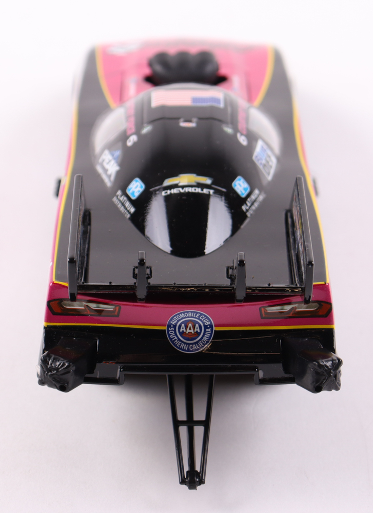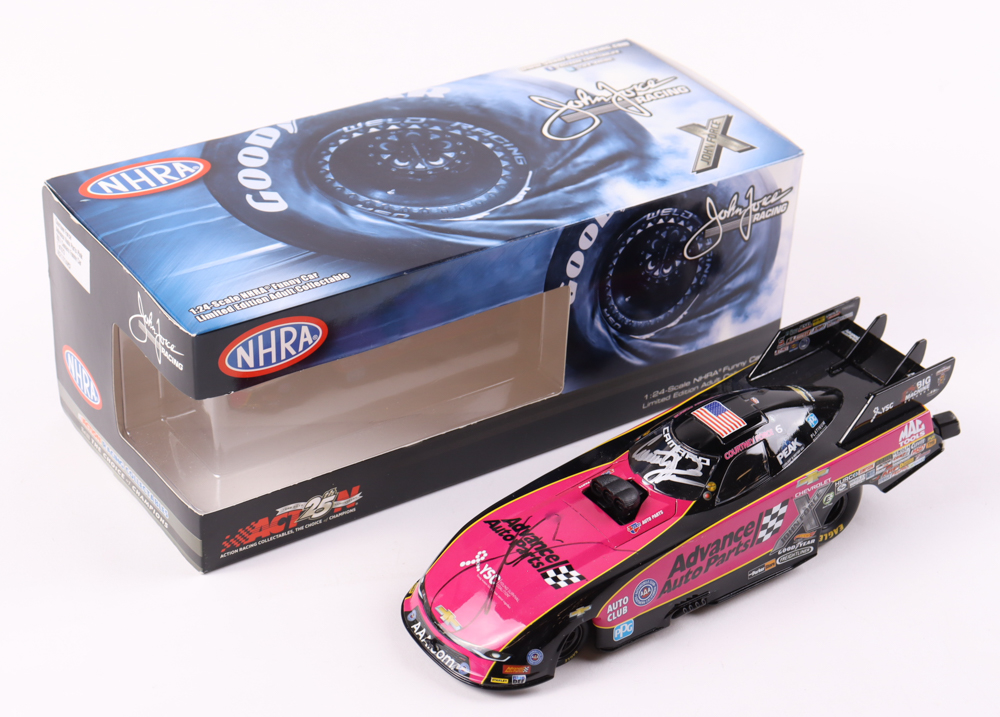Diecast car is limited edition and has been hand-signed on the windshield by Courtney Force and on the hood of the car by John Force. Please note, John Force's signature has been smudged.