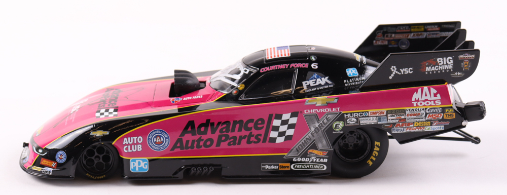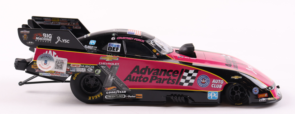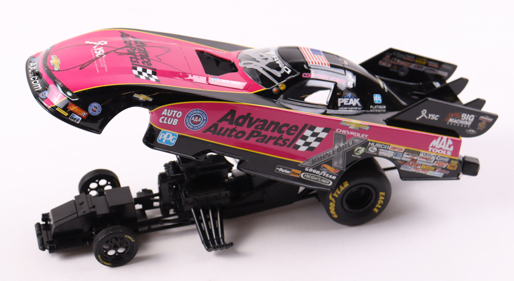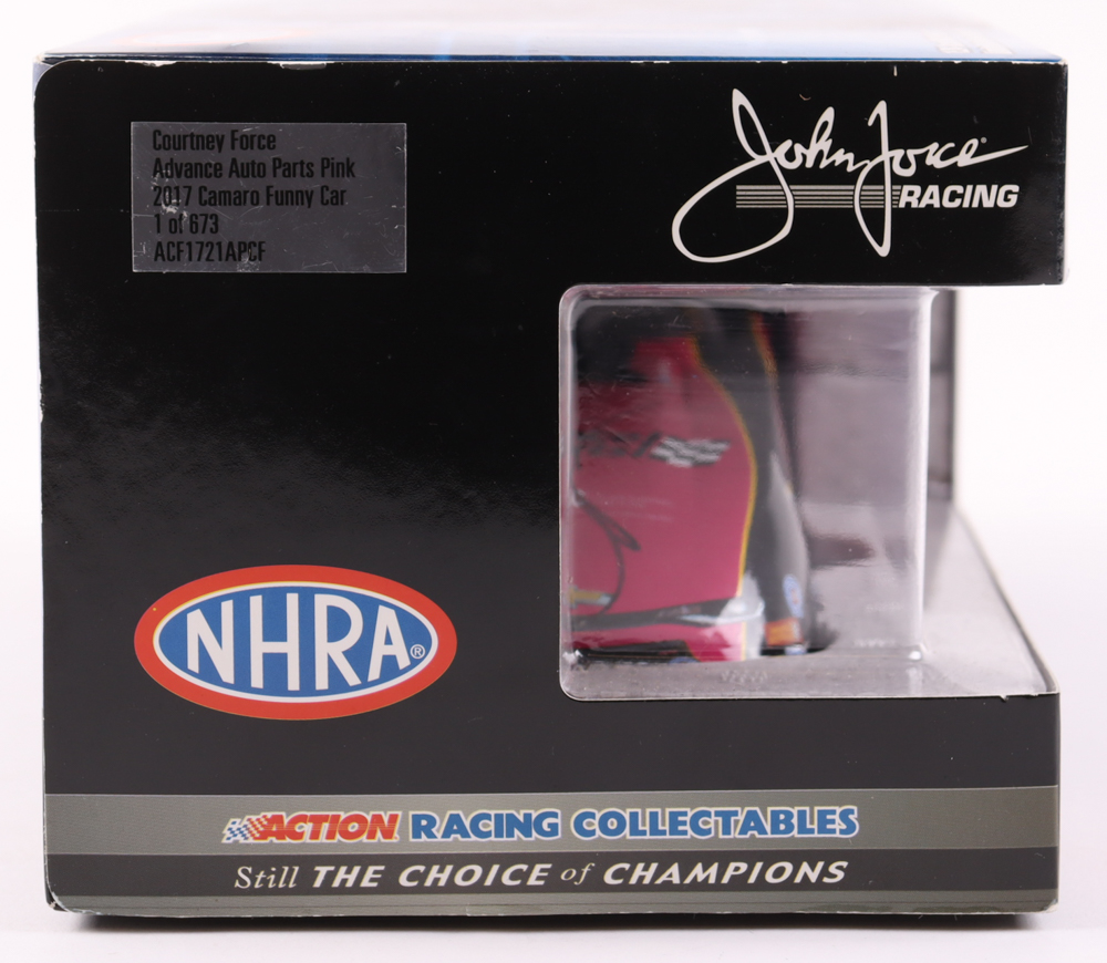 Courtney Force & John Force Signed LE Advance Auto Parts Pink 2017 Camaro Funny Car 1:24 Diecast Car (Beckett)