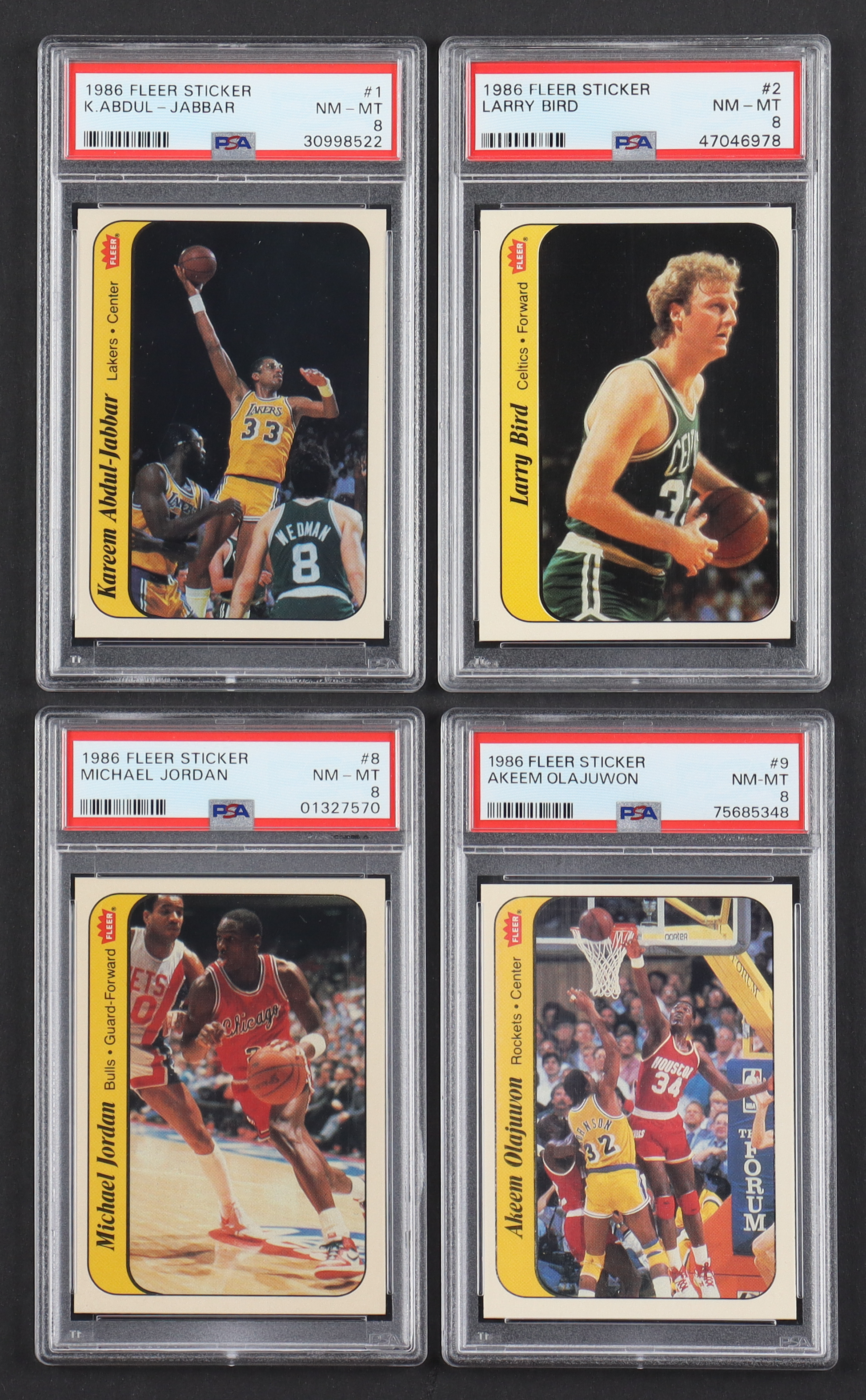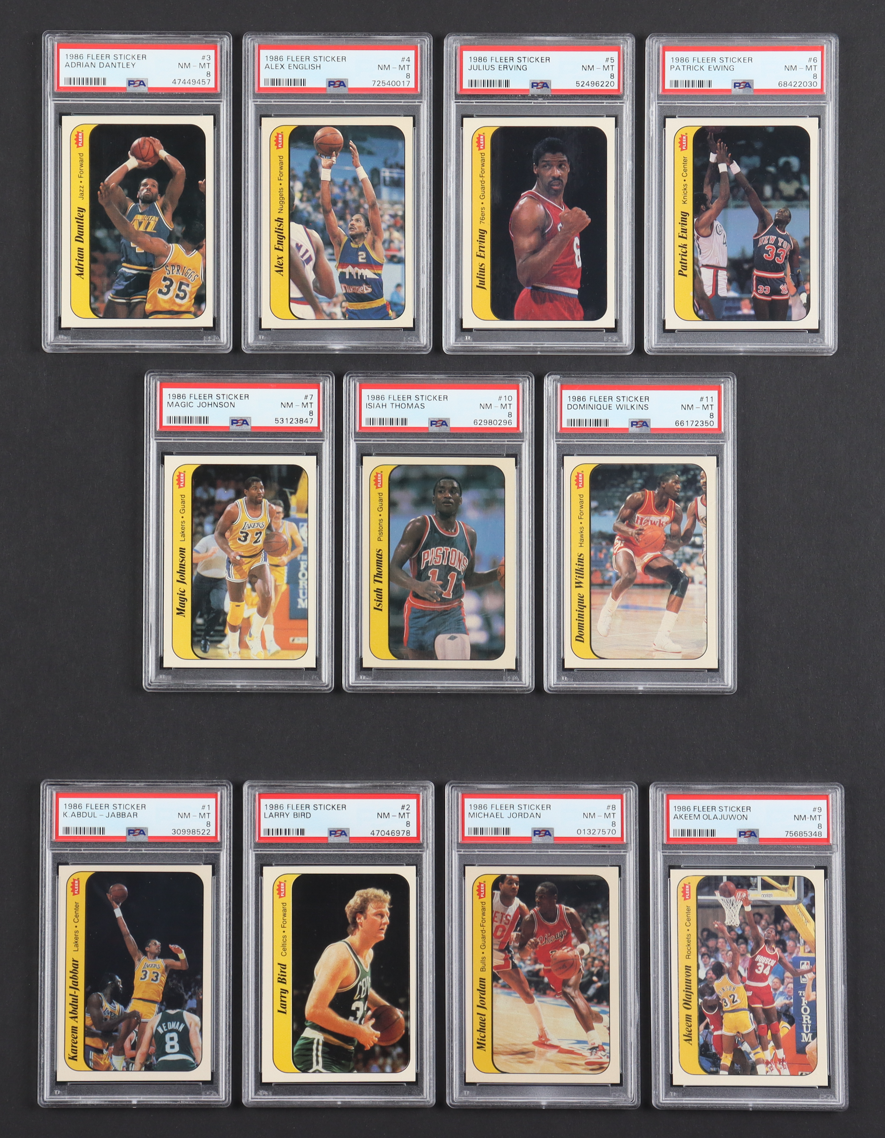 1986-87 Fleer Stickers Basketball Complete Set of (11) Cards ALL Graded PSA 8 with Michael Jordan RC