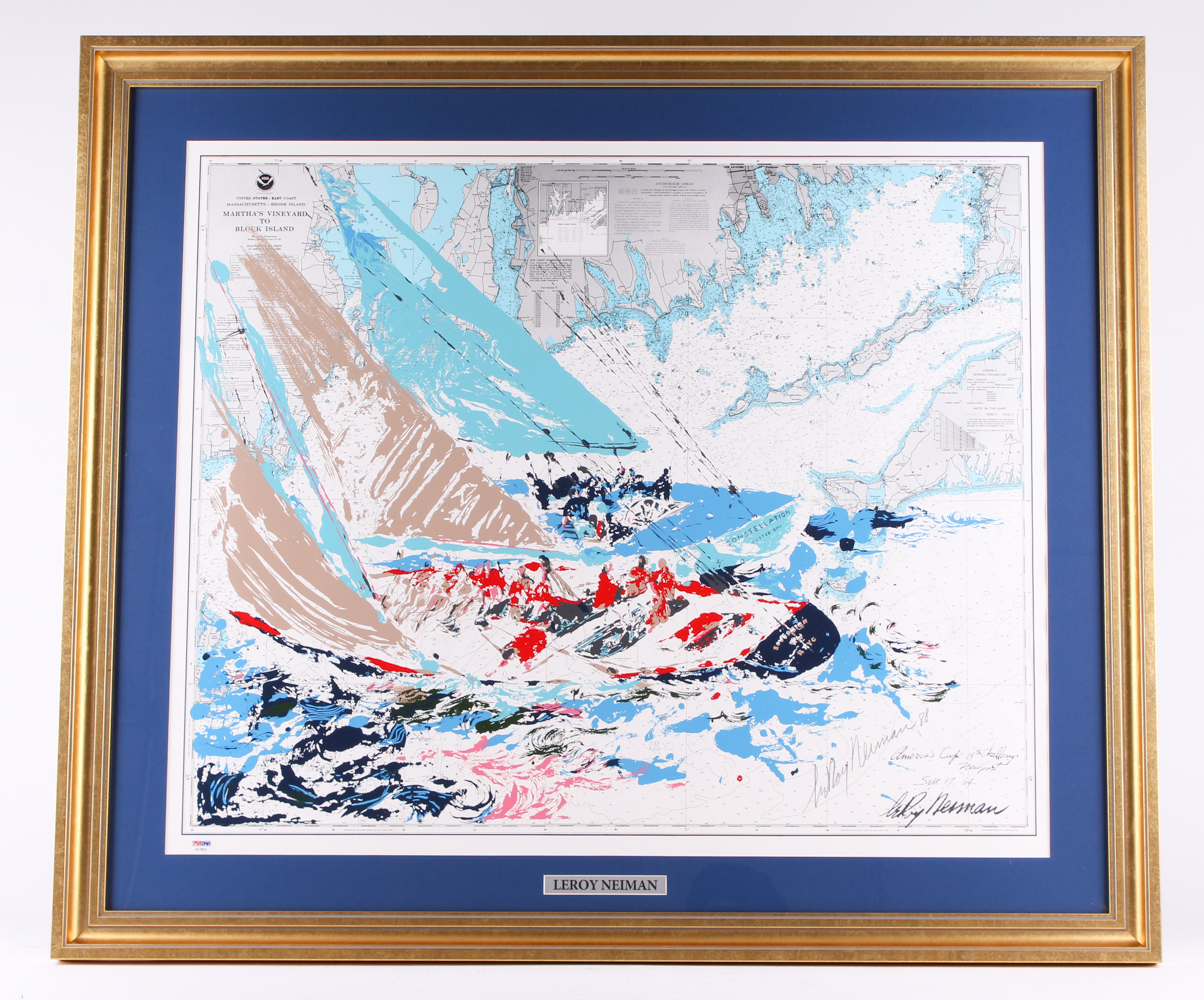 LeRoy Neiman Signed "America's Cup: 19th Challenge Newport Sailing" 31"x36.5" Custom Framed High Quality Serigraph Display (PSA COA)