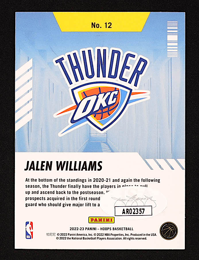 Jalen Williams Signed 2022-23 Hoops Arriving Now Winter #12 RC (JSA)