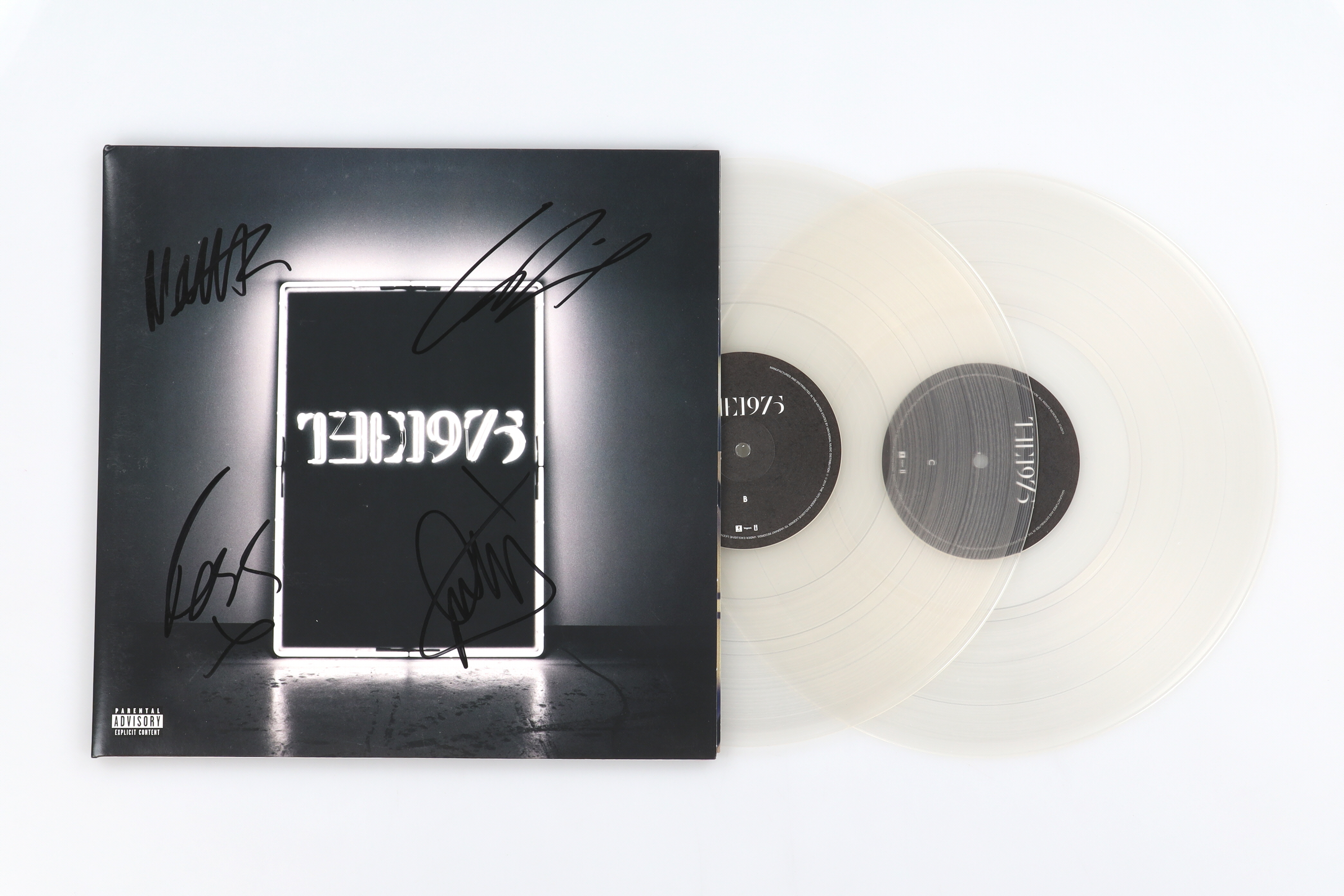 Vinyl record album sleeve. Hand-signed by Matty Healy, Adam Hann, Ross MacDonald and George Daniel. Please note, the vinyl records are included.