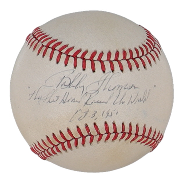 Bobby Thomson Signed ONL Baseball Inscribed "The Shot Heard Round The World" & "Oct 3, 1951" (Beckett)