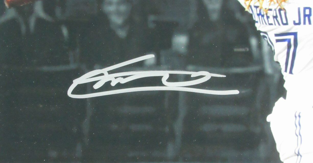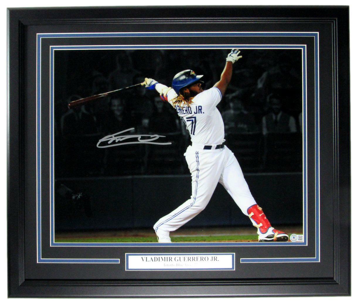 Custom frame measures 22.5" x 26.5" in size and features a photo that has been hand-signed by Vladimir Guerrero (Toronto Blue Jays, HOF).