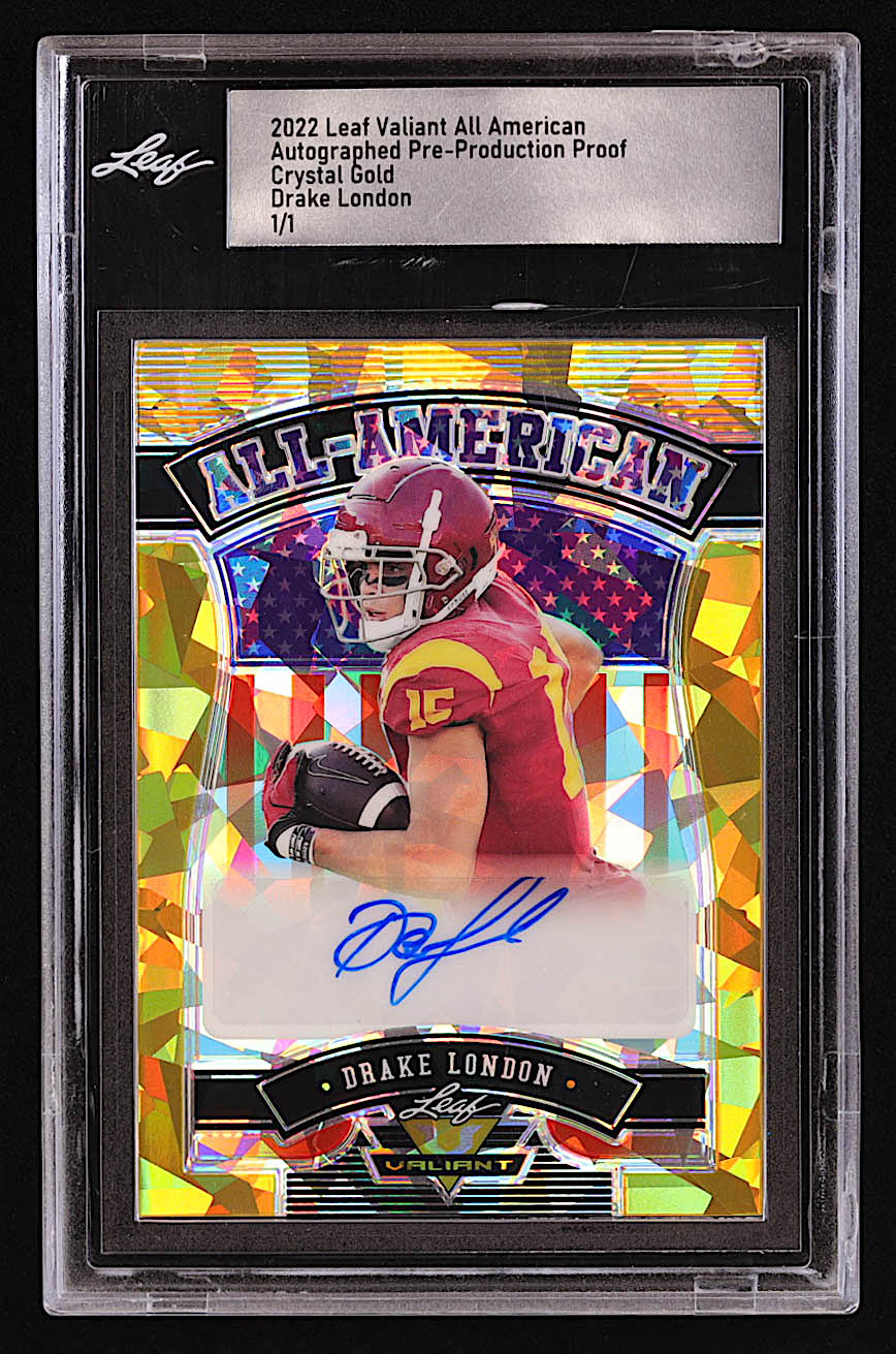 Drake London 2022 Leaf Valiant All American Autograph Crystal Gold Pre-Production Proof #NNO RC #1/1 (Leaf)