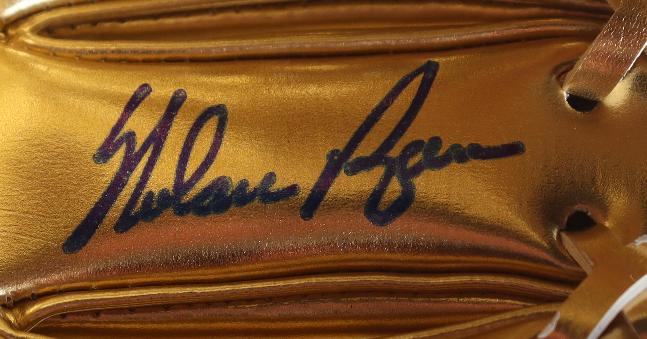 Rawlings mini golden glove has been hand-signed by Nolan Ryan (Texas Rangers, HOF). Please note display case is included as shown.