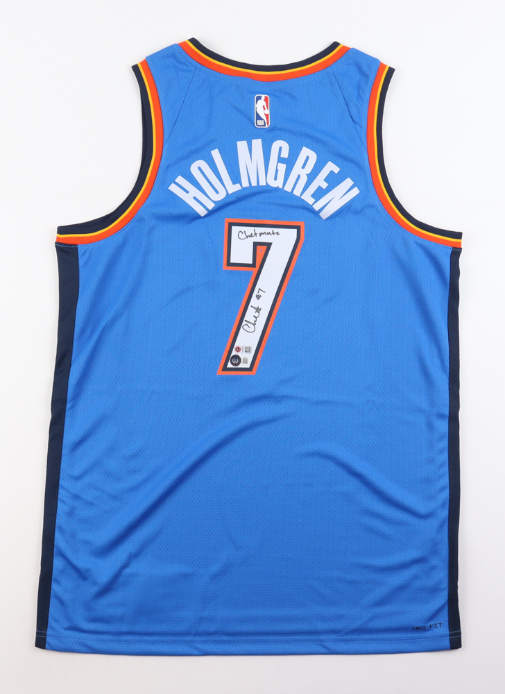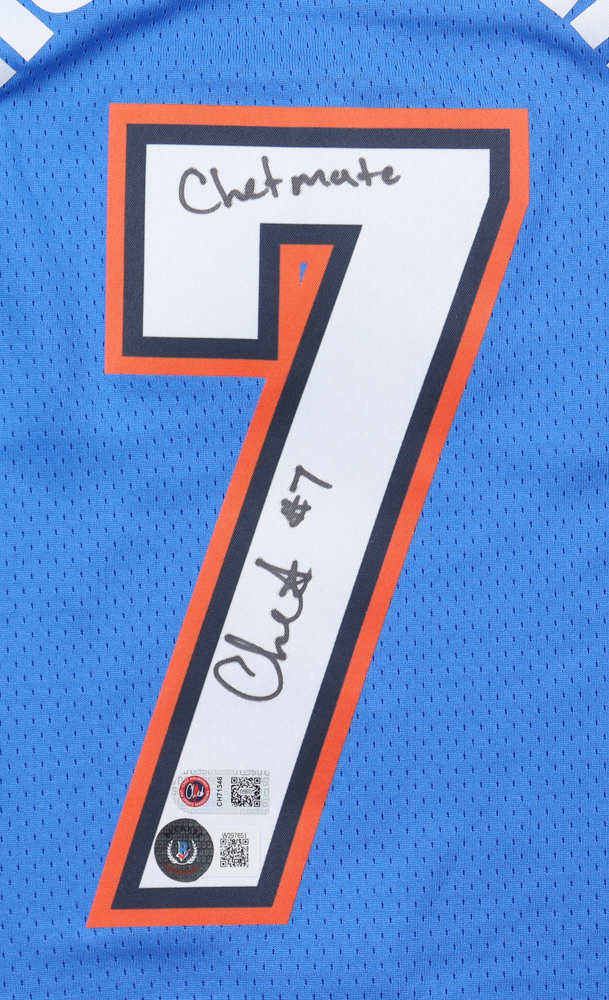 Chet Holmgren Signed Thunder Jersey Inscribed "Chetmate" (Beckett & Holmgren)