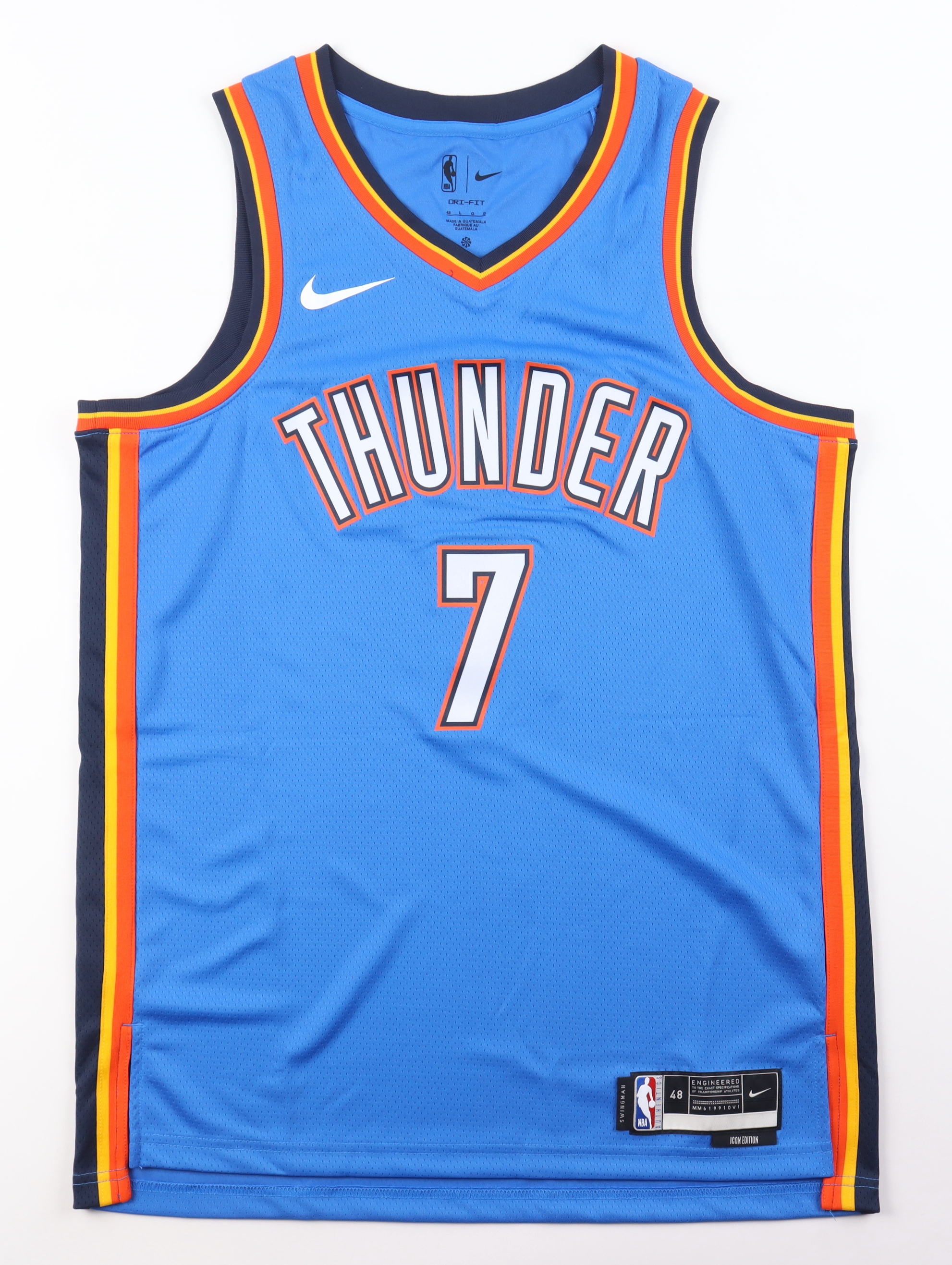 Nike jersey everything is pressed on, size 48. Hand-signed and inscribed by Chet Holmgren (Oklahoma City Thunder).