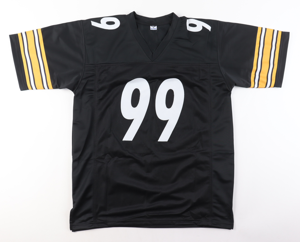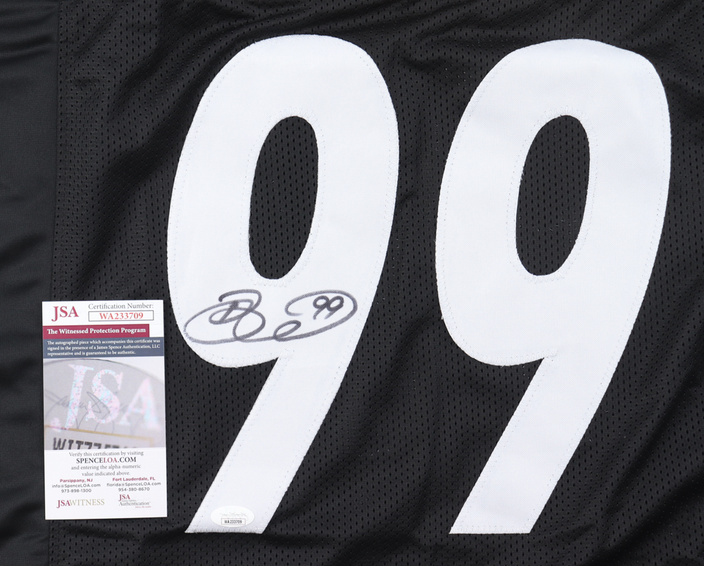 Custom jersey with everything sewn on, size XL. Hand-signed by Brett Keisel.