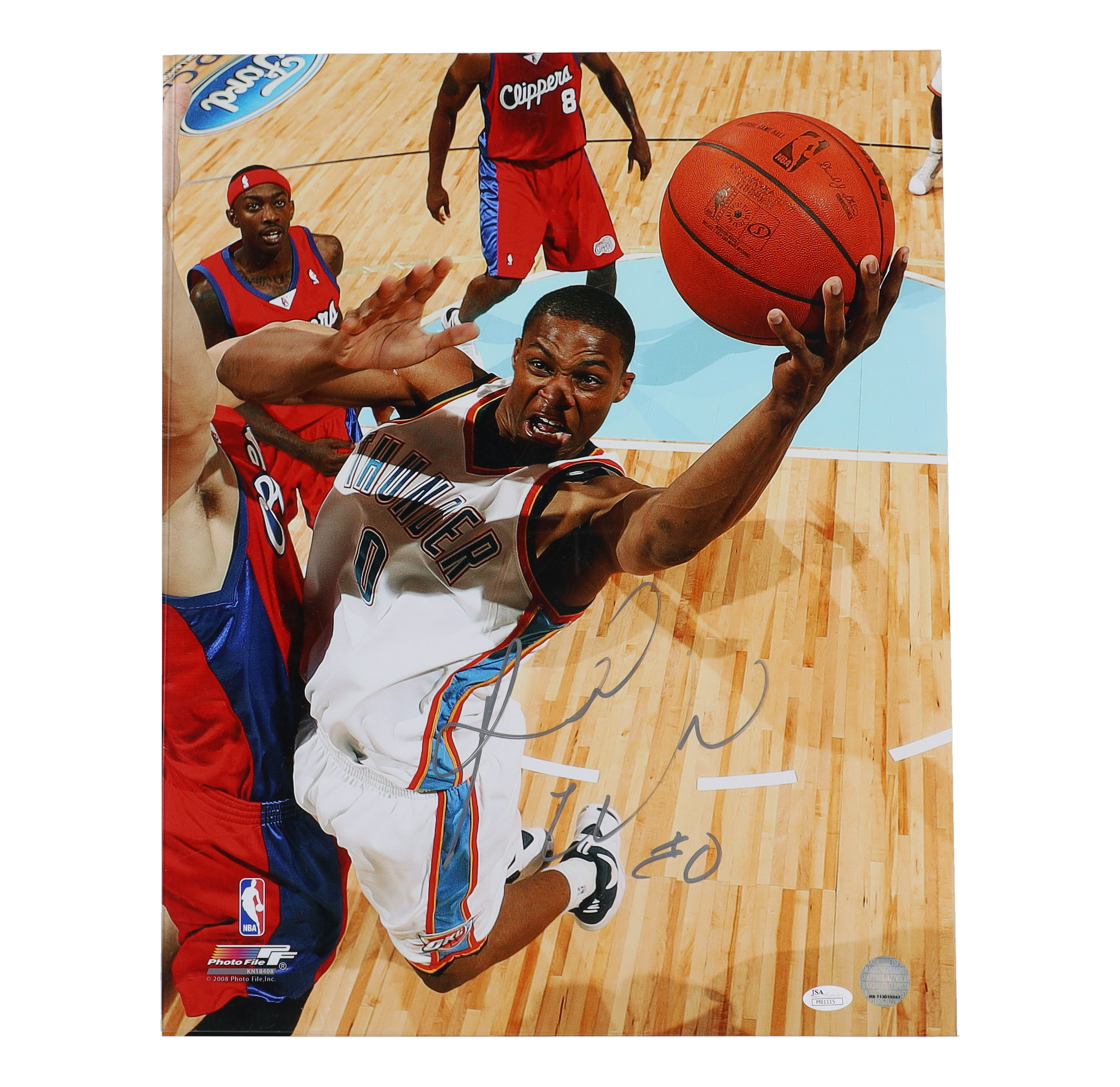 Photo measures 16" x 20" in size and has been hand-signed by Russell Westbrook (Oklahoma City Thunder).