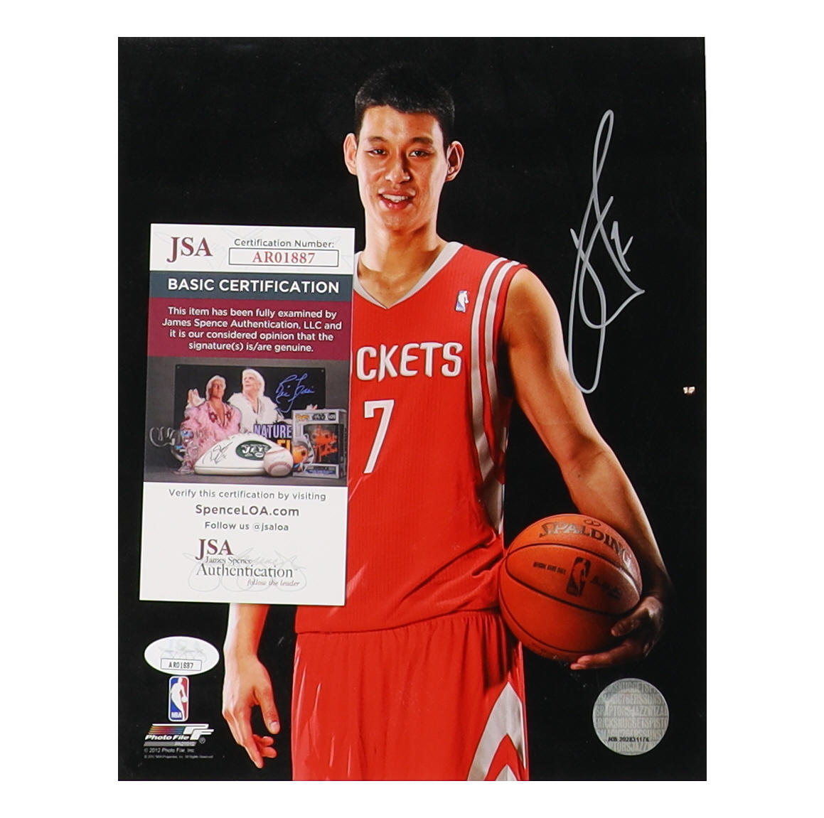 Photo measures 8" x 10" in size and has been hand-signed by Jeremy Lin (Houston Rockets).