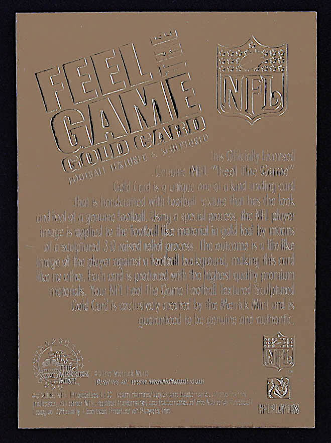 Tom Brady 2006 Merrick Mint Feel the Game 23Kt Gold Card