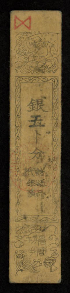 17-1800's Feudal Japan, Edo Period - 1 Silver Monme Hansatsu Clan Note