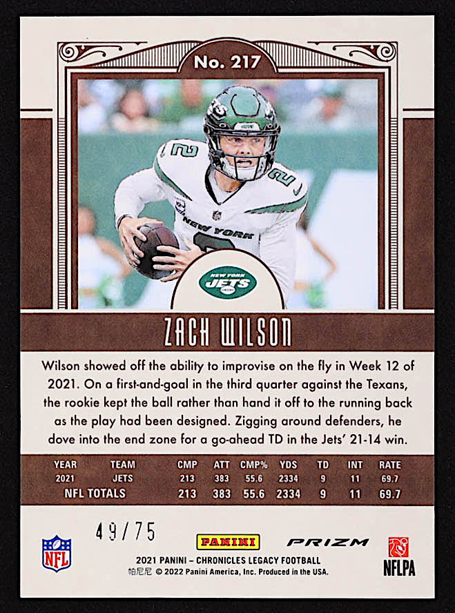 Zach Wilson 2021 Panini Chronicles Legacy Update Rookies Orange #217 RC #49/75