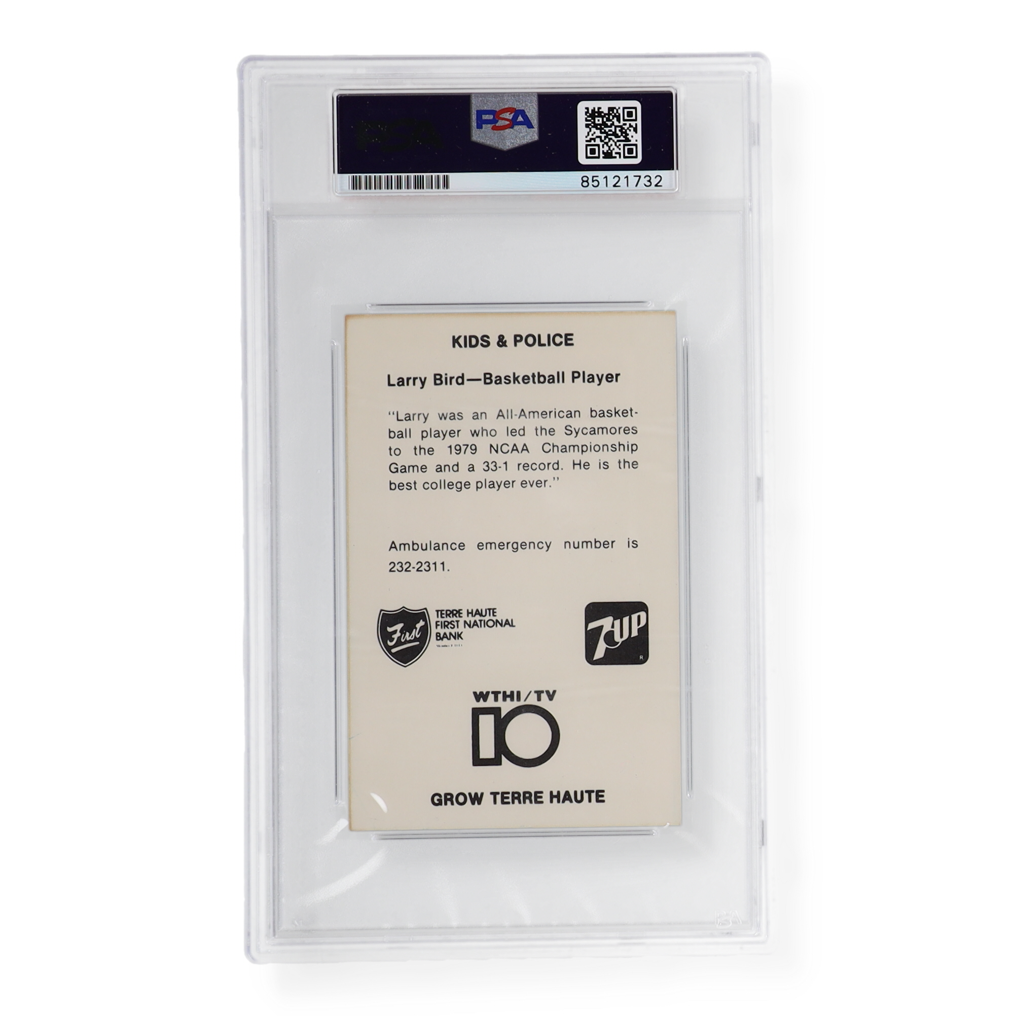 1982 Indiana State Sycamore Rampage Card, hand-signed by Larry Bird (HOF). Please refer to photos for more details on the condition of the item.