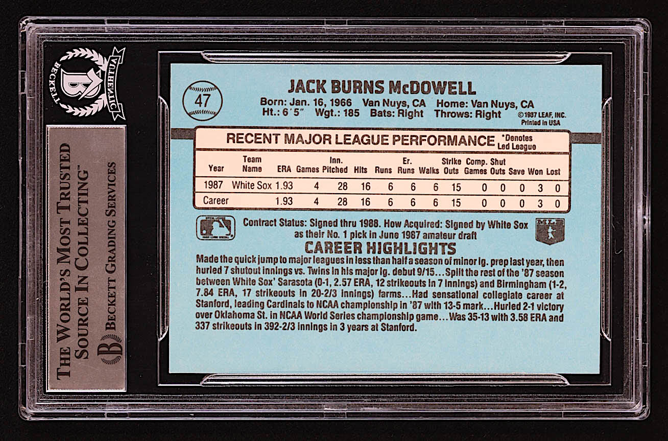 Jack McDowell Signed 1988 Donruss #47 RC (BGS)