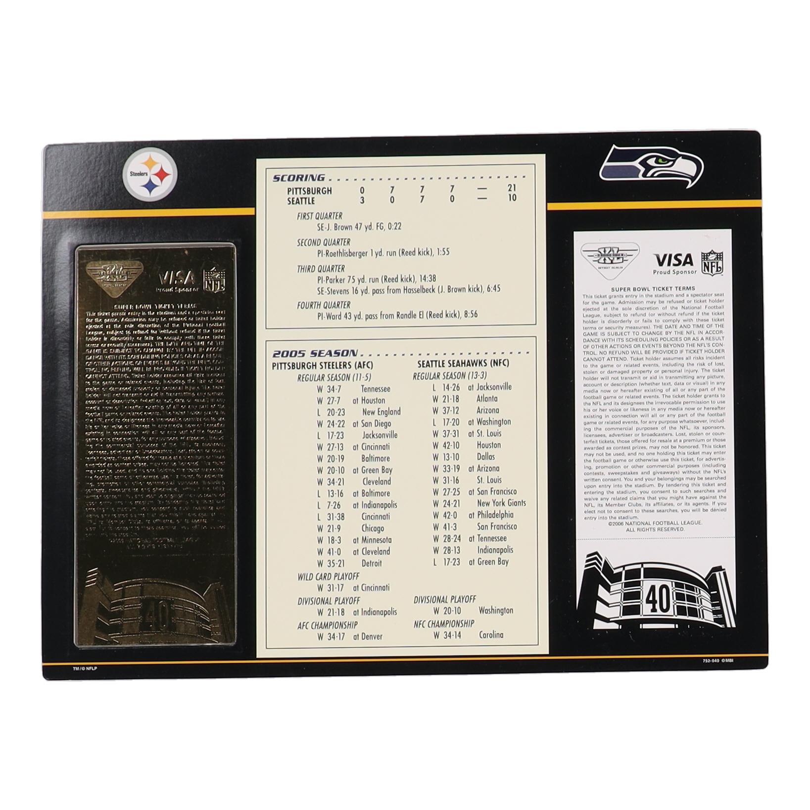 Pittsburgh Steelers Champions 23KT Super Bowl XL Ticket