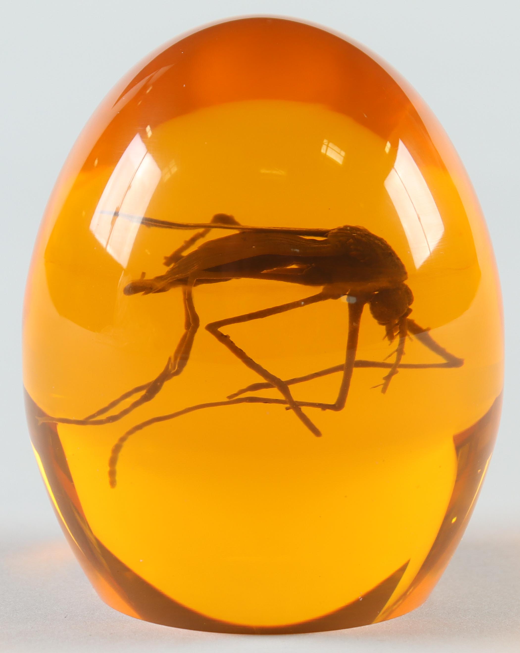 Jurassic Park Prop Replica Mosquito in Amber in Glass Display Case with Wood Base