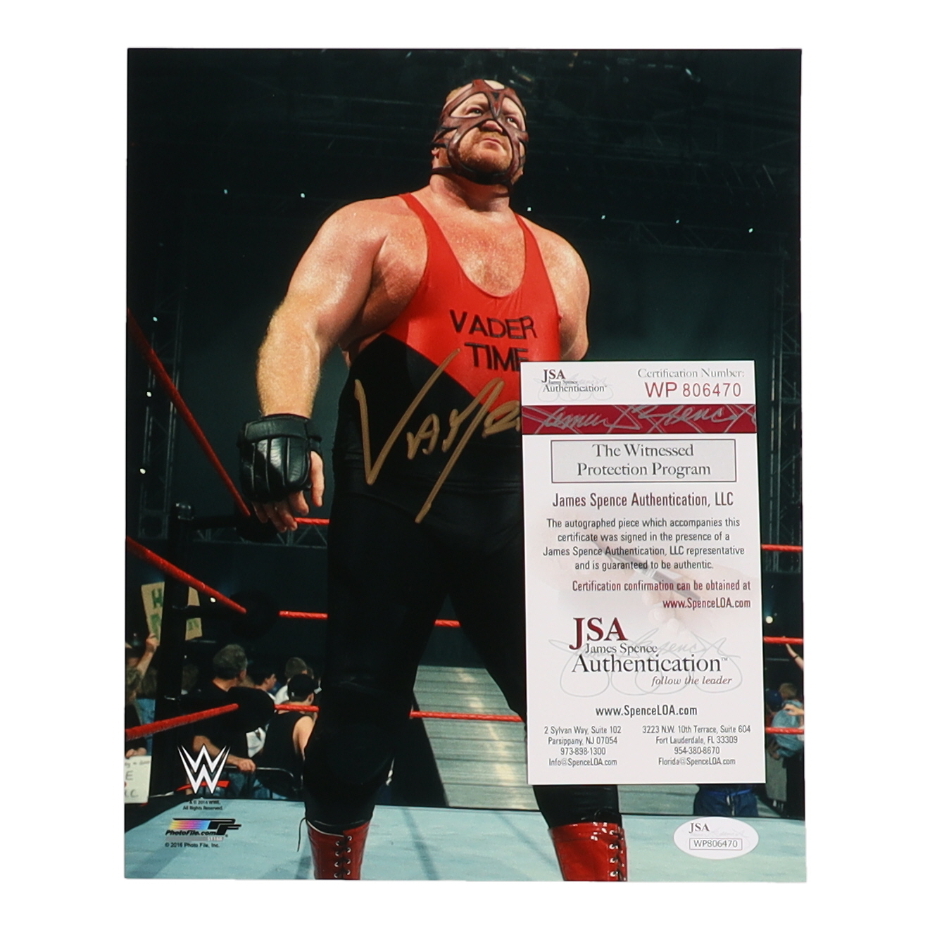 Photo measures approximately 8" x 10" in size. Hand-signed by Big Van Vader (D. 2018, HOF).