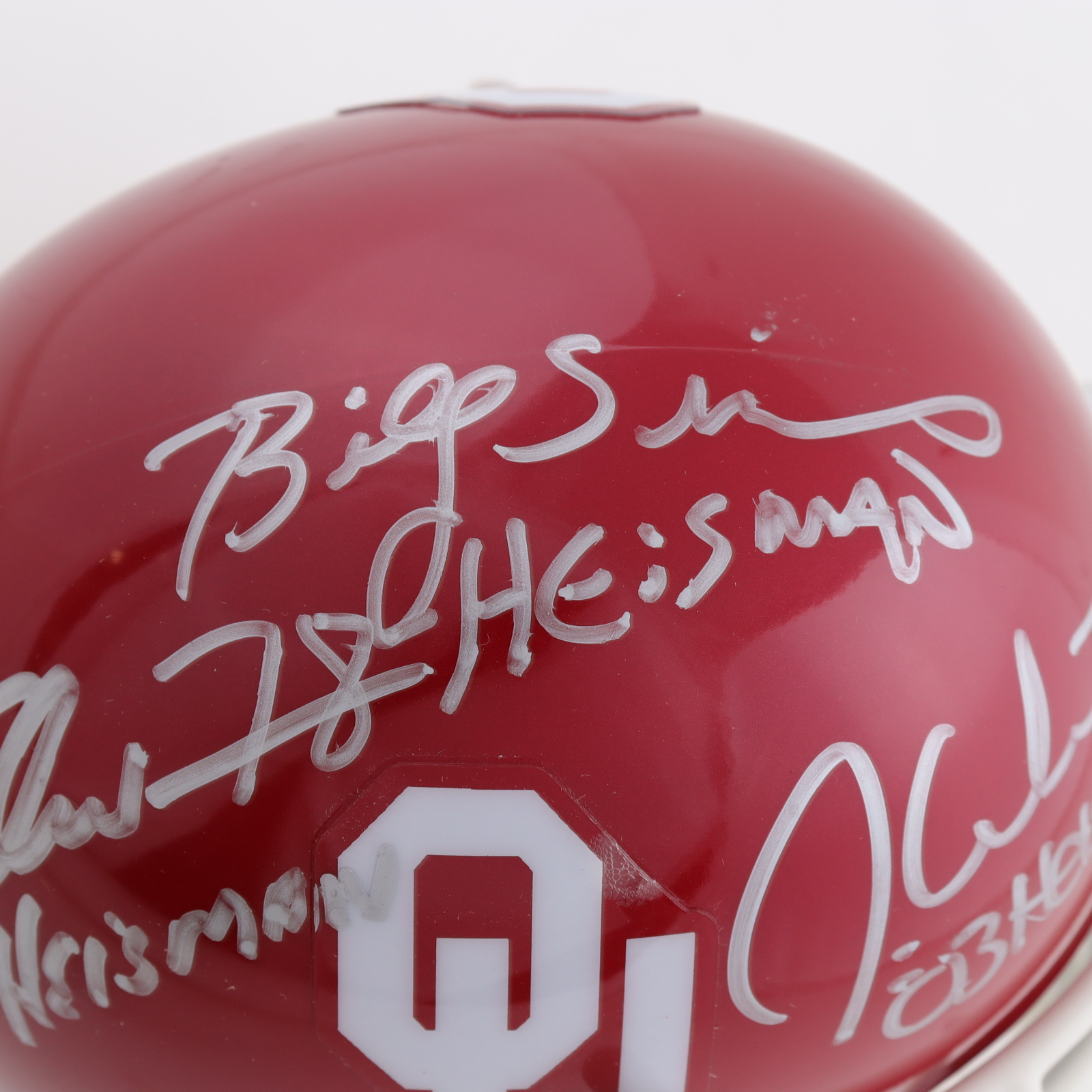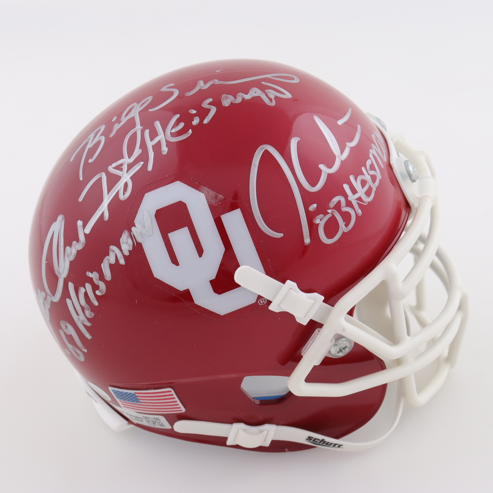 Billy Sims, Steve Owens & Jason White Signed Oklahoma Sooners Mini Helmet with Heisman Inscriptions (Fanatics)
