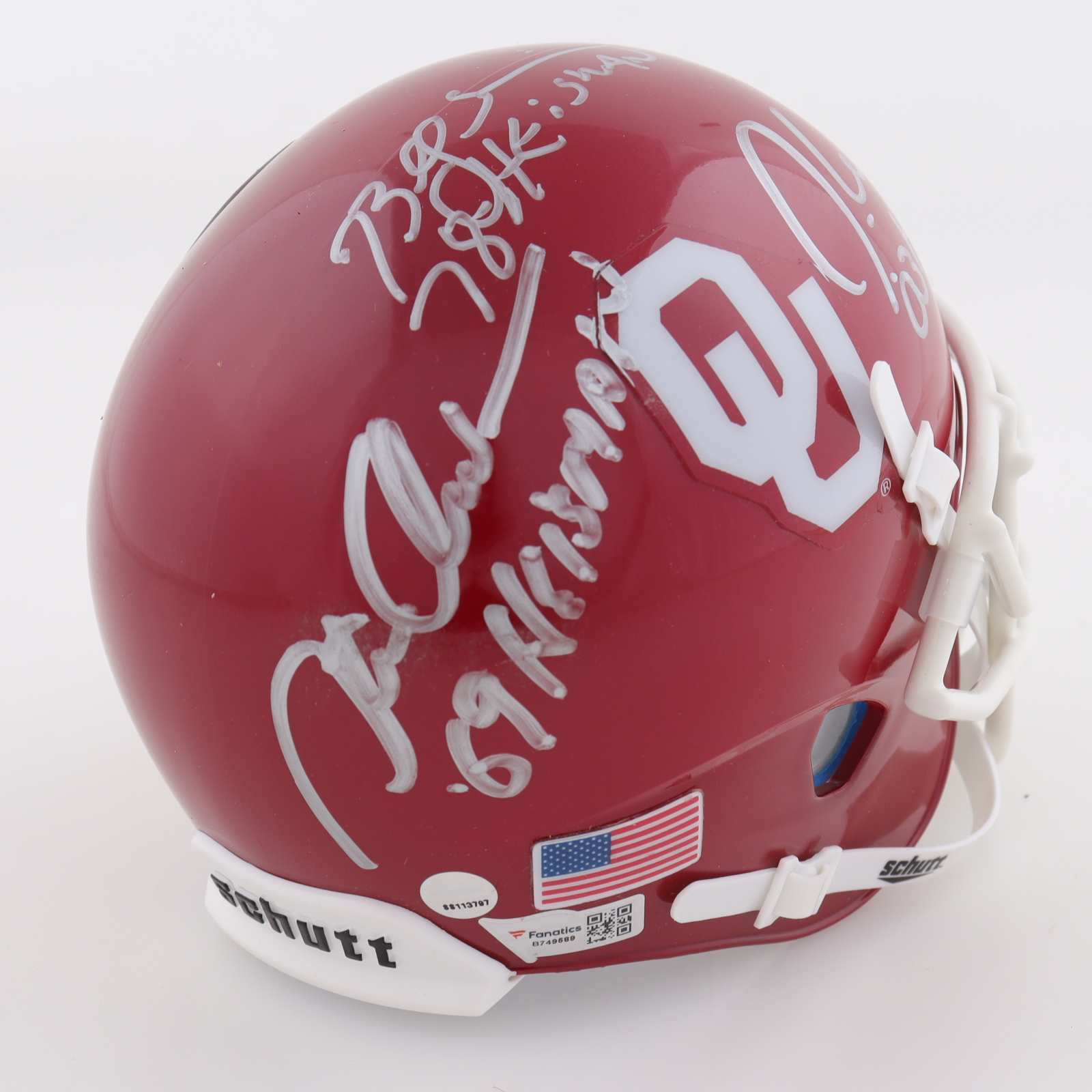 Billy Sims, Steve Owens & Jason White Signed Oklahoma Sooners Mini Helmet with Heisman Inscriptions (Fanatics)