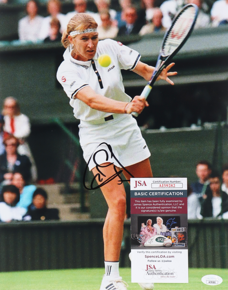 Photo measures 11" x 14" in size and has been hand-signed by Steffi Graf (HOF).