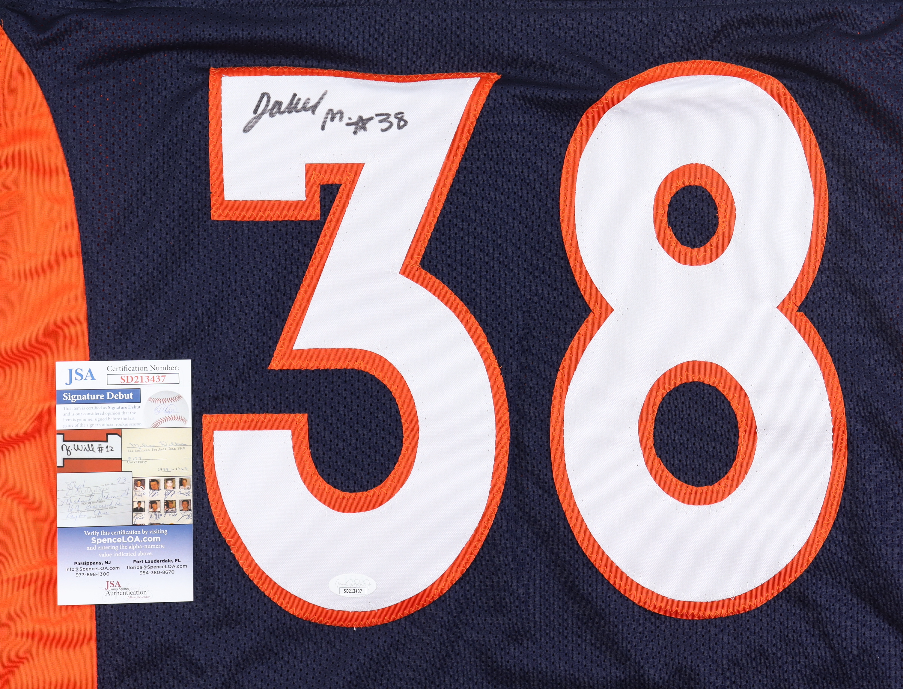 The autograph(s) includes an official James Spence Authentication (JSA) "Signature Debut" hologram and COA. "Signature Debut" is the autographed memorabilia equivalent to a rookie card. The JSA definition of a "Signature Debut" is as follows: "Any item that is autographed and received by JSA prior to the last game of the signer's official rookie season.