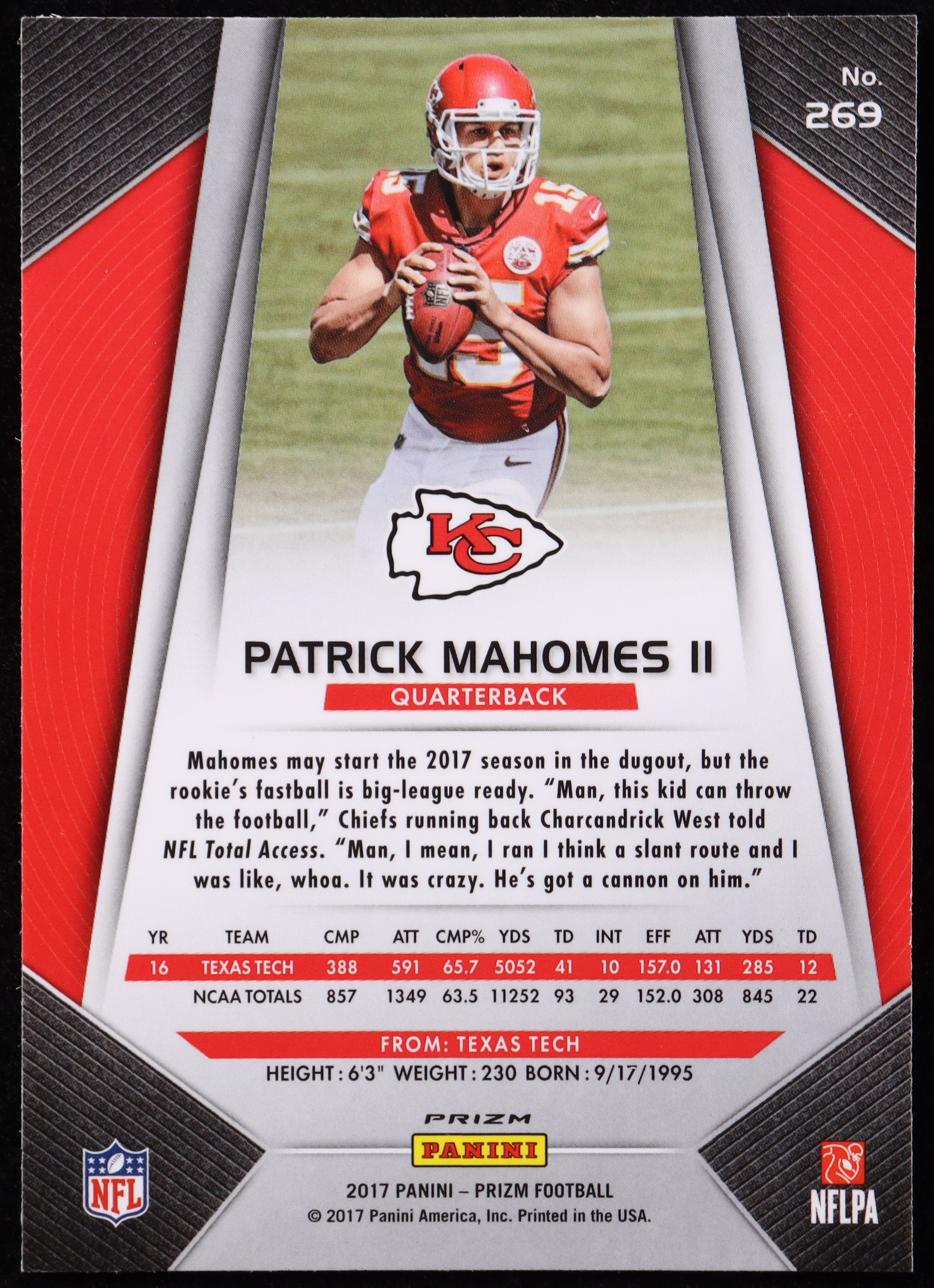 Patrick Mahomes II 2017 Panini Prizm Silver #269 RC