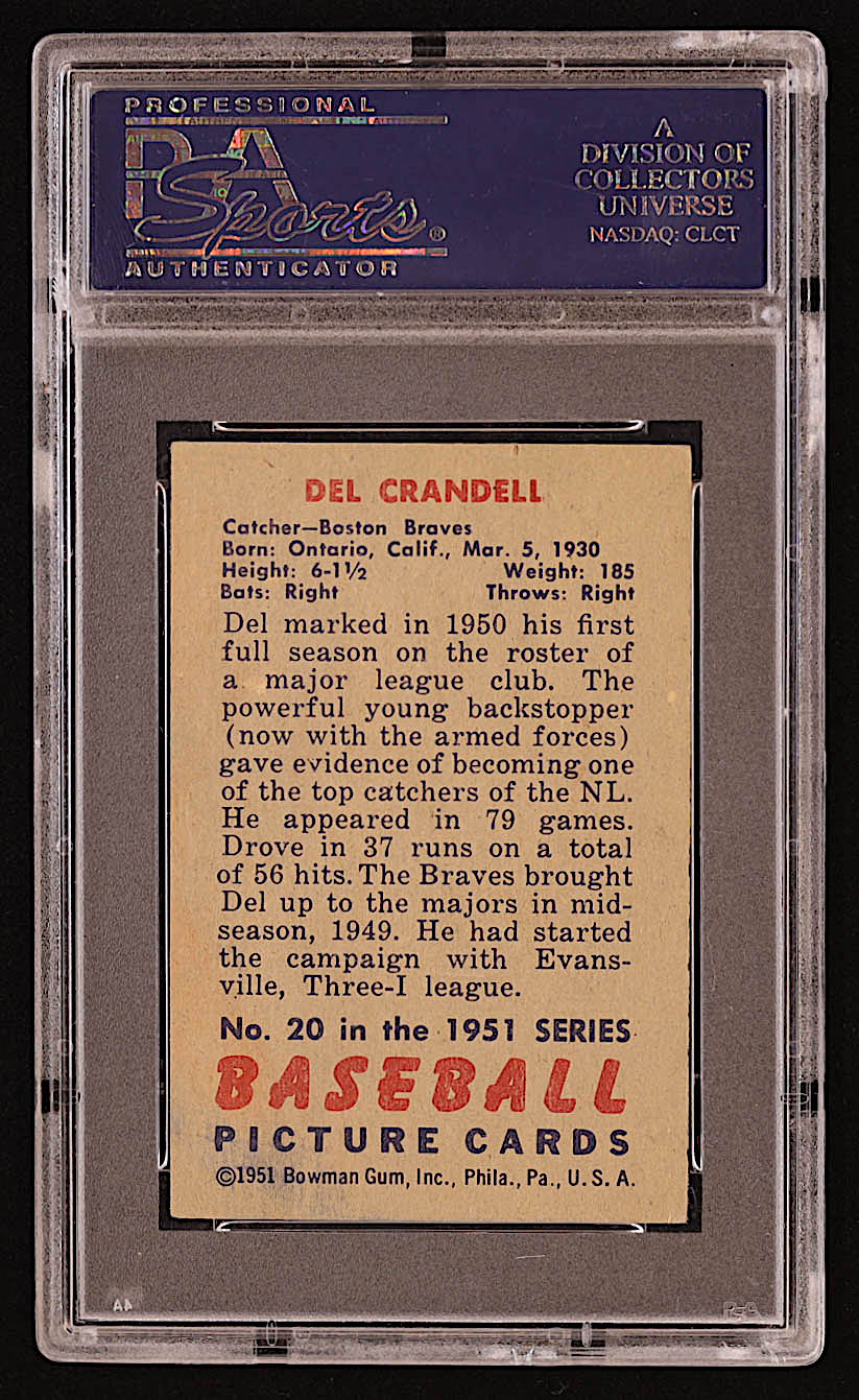 Del Crandall Signed 1951 Bowman #20 (PSA)