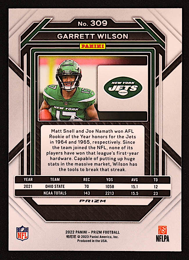 Garrett Wilson 2022 Panini Prizm Prizms Green #309 RC