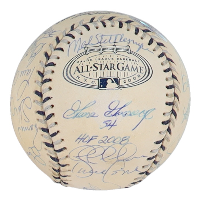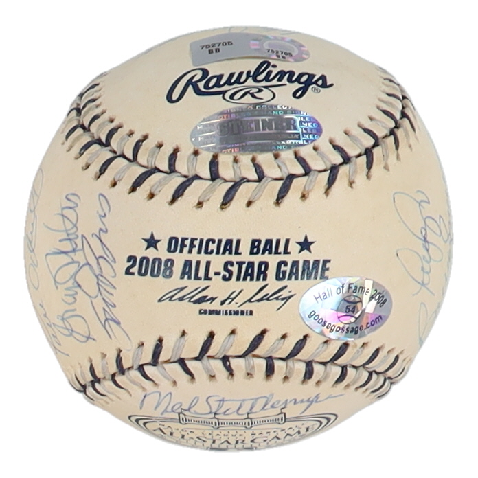 Rawlings Official 2008 All-Star Game baseball. Hand-signed by (15) with Goose Gossage, Derek Jeter, Don Larsen, Chris Chambliss, Wilson Betemit, Mike Stanton, Paul O'Neil. The baseball is limited edition and hand-numbered #58/79.