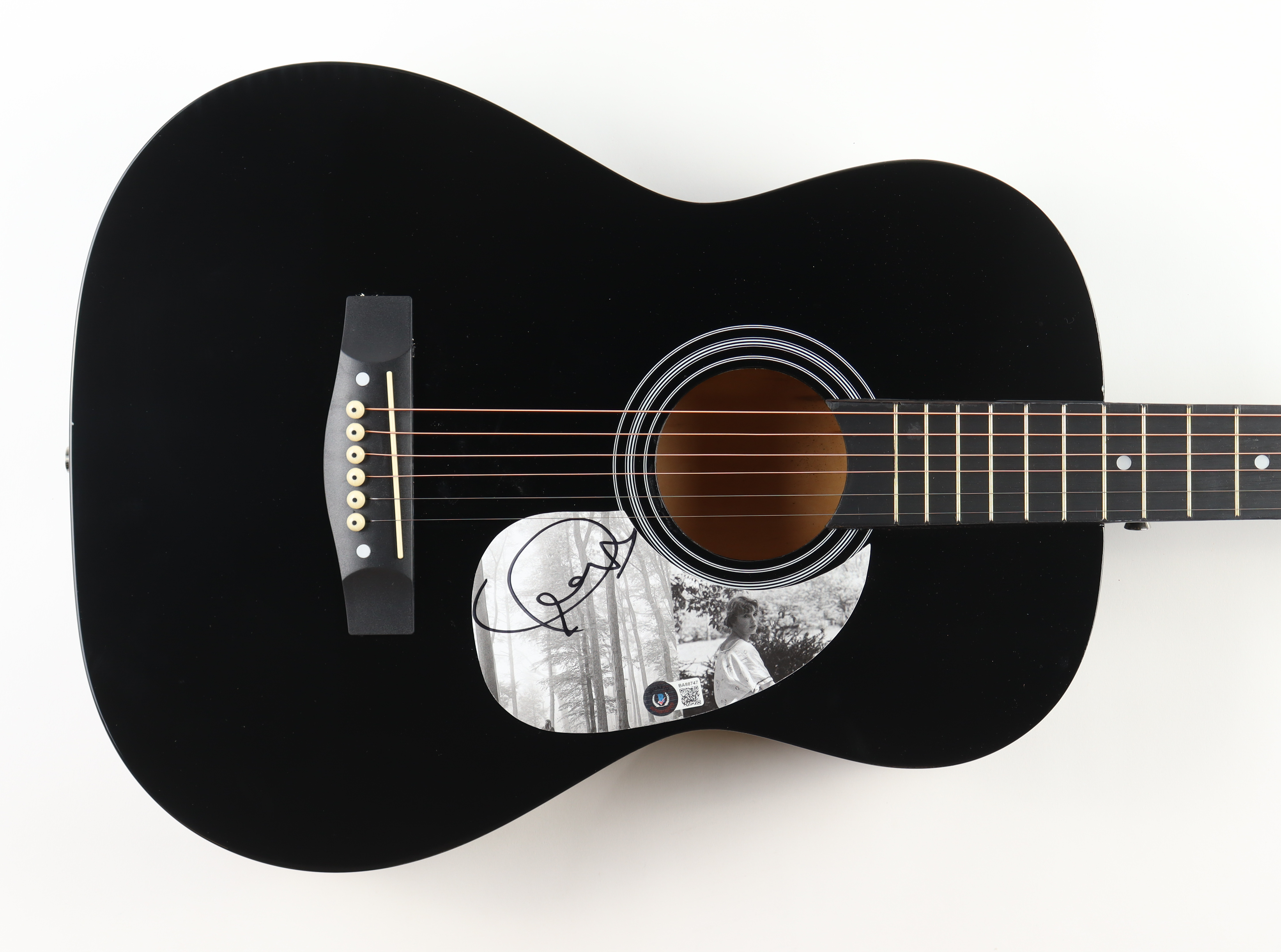 Acoustic guitar measures 39" in length and has been hand-signed on the pickguard by Taylor Swift.