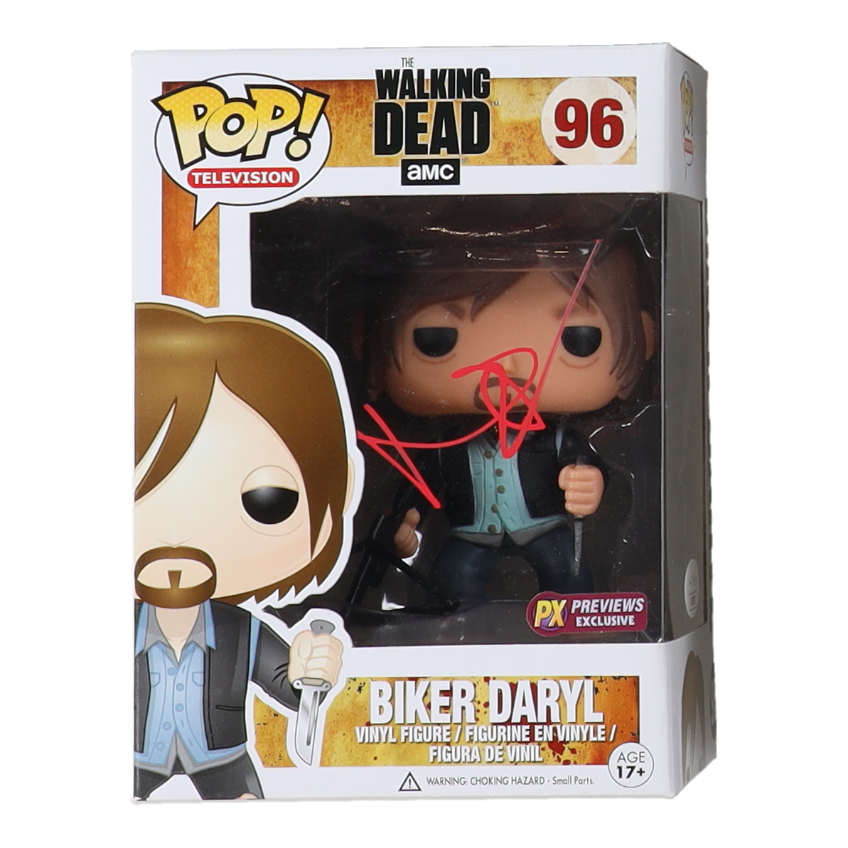 Vinyl figure measures approximately 4" tall and has been hand-signed on the packaging by Norman Reedus.