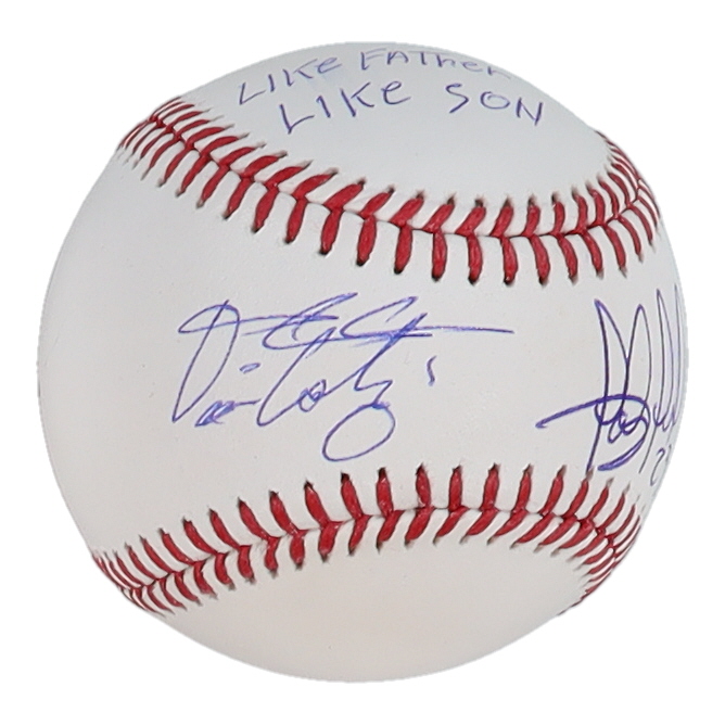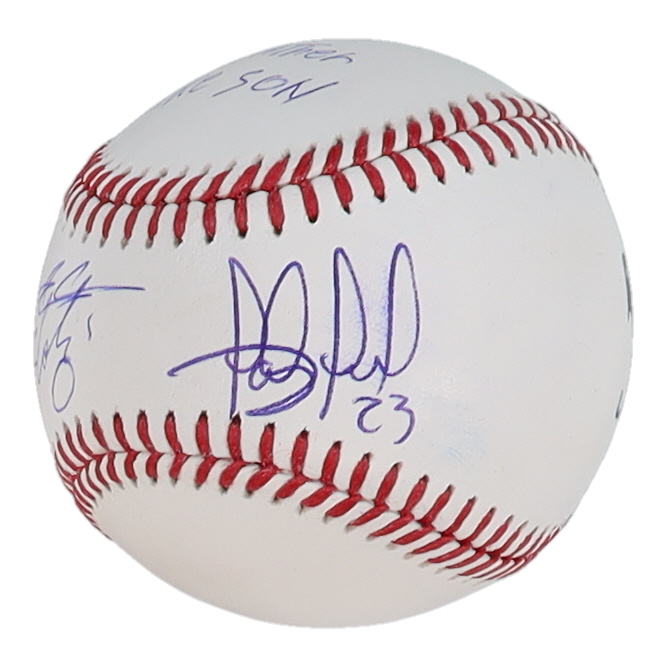 Rawlings Official Major League baseball. Hand-signed and inscribed by Fernando Tatis Sr. (St. Louis Cardinals) and Fernando Tatis Jr. (San Diego Padres) Please note, Fernando Tatis Jr. signature and the inscription are smudged.