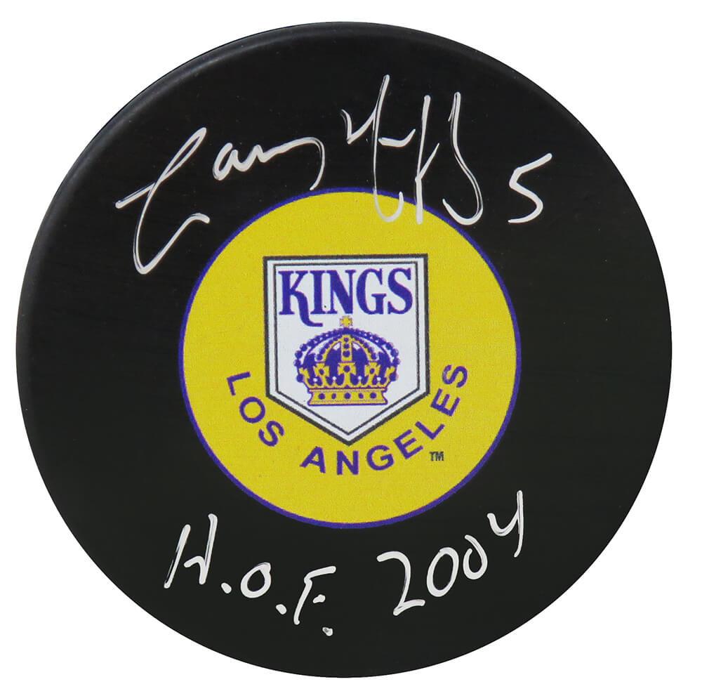Larry Murphy Signed Kings Throwback Logo Hockey Puck Inscribed "H.O.F. 2004" (Schwartz)