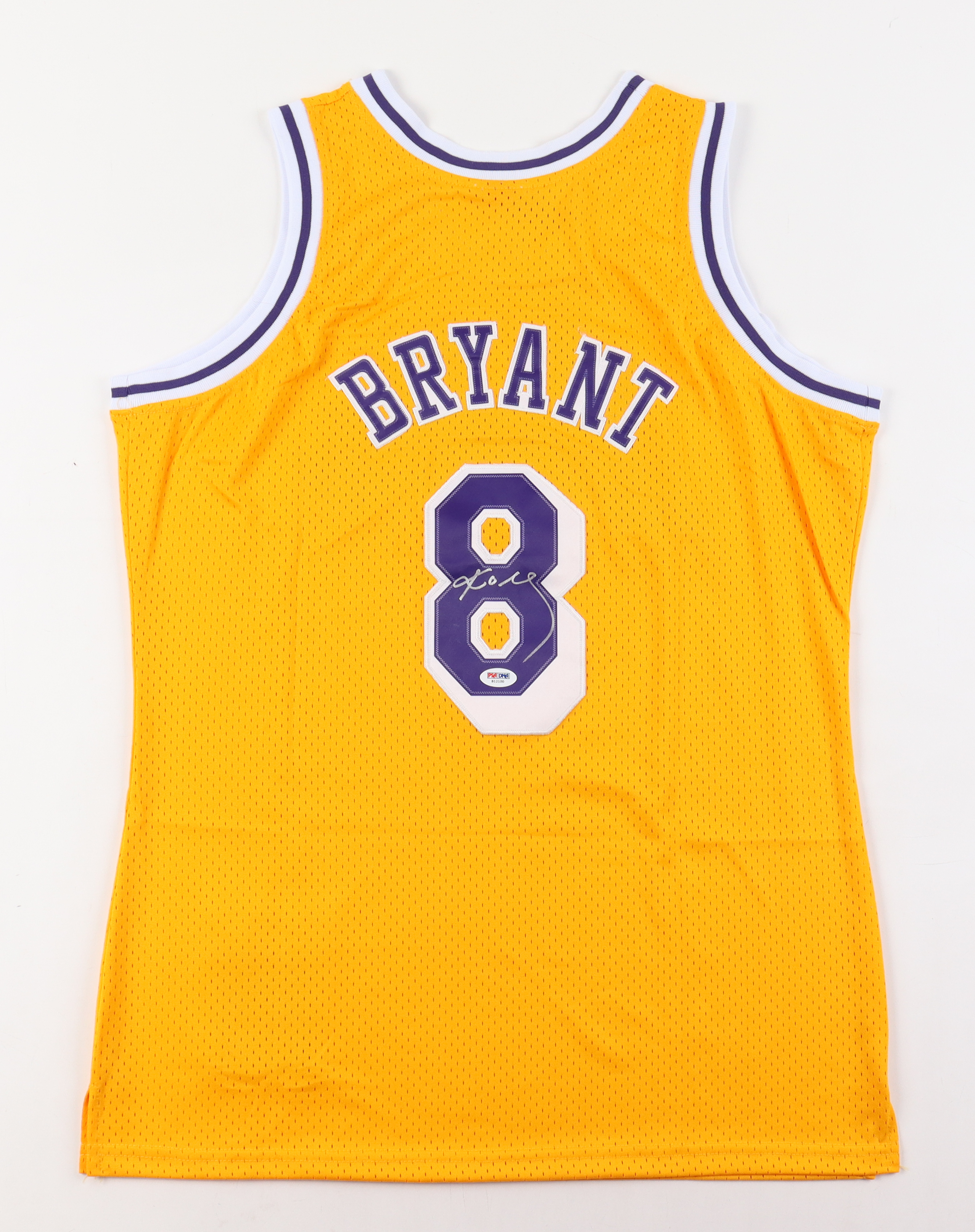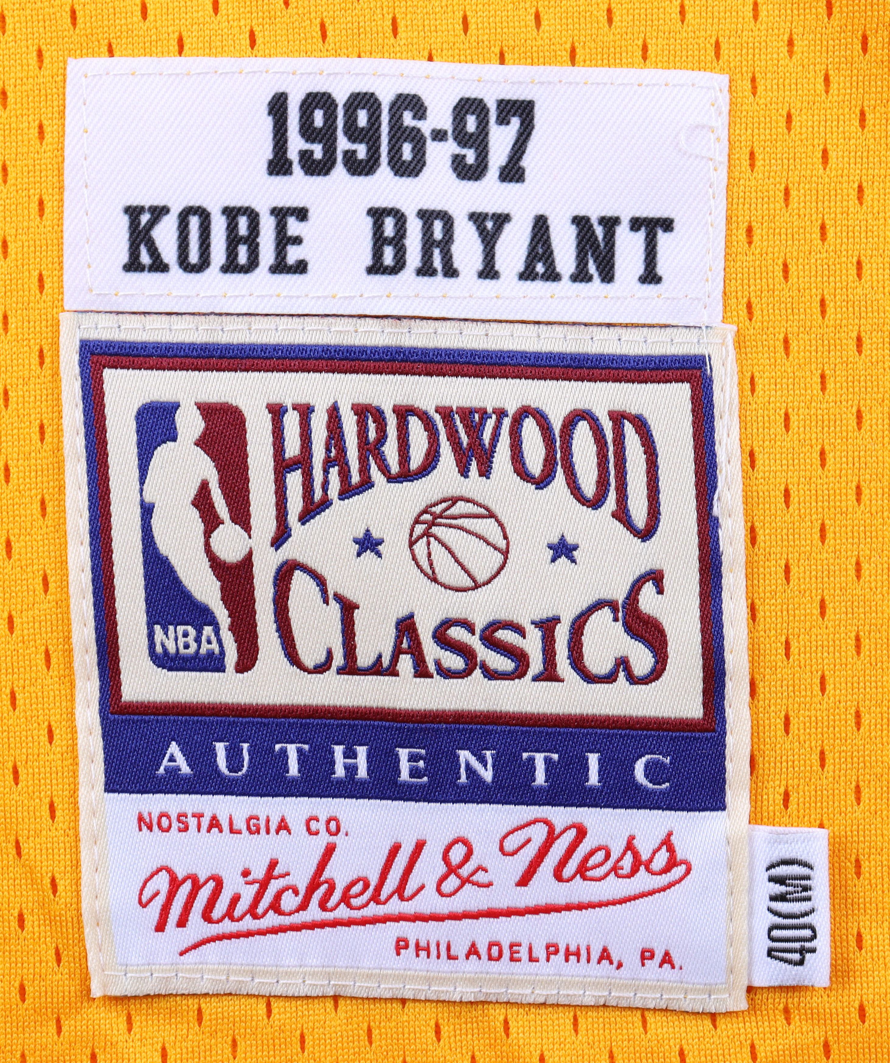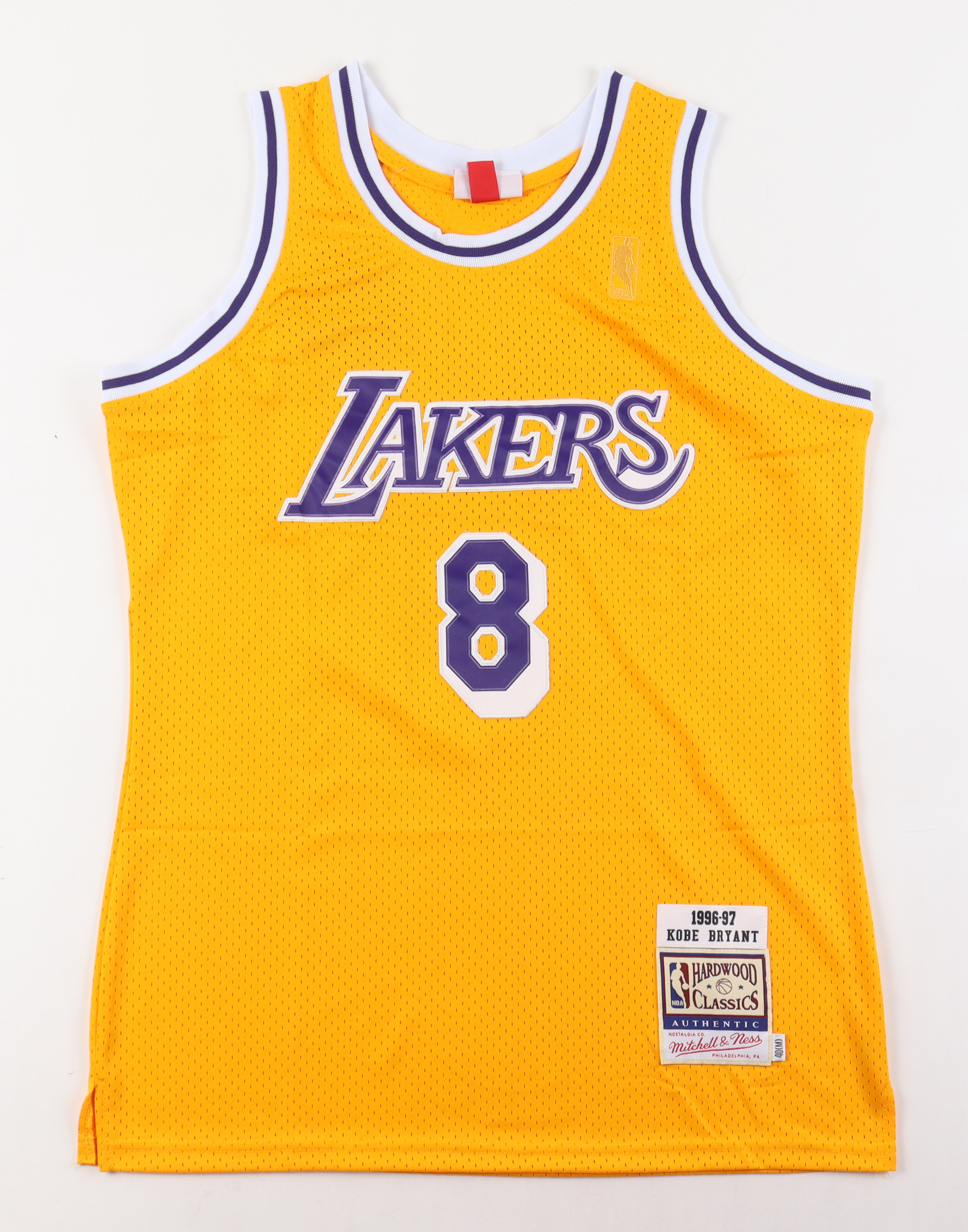 Mitchell & Ness Hardwood Classics style jersey. Everything sewn on, size M. Hand-signed by Los Angeles Lakers Legend and NBA Hall of Famer, Kobe Bryant! This jersey has been styled to look like the jersey Bryant wore during his rookie year of 1996-97.