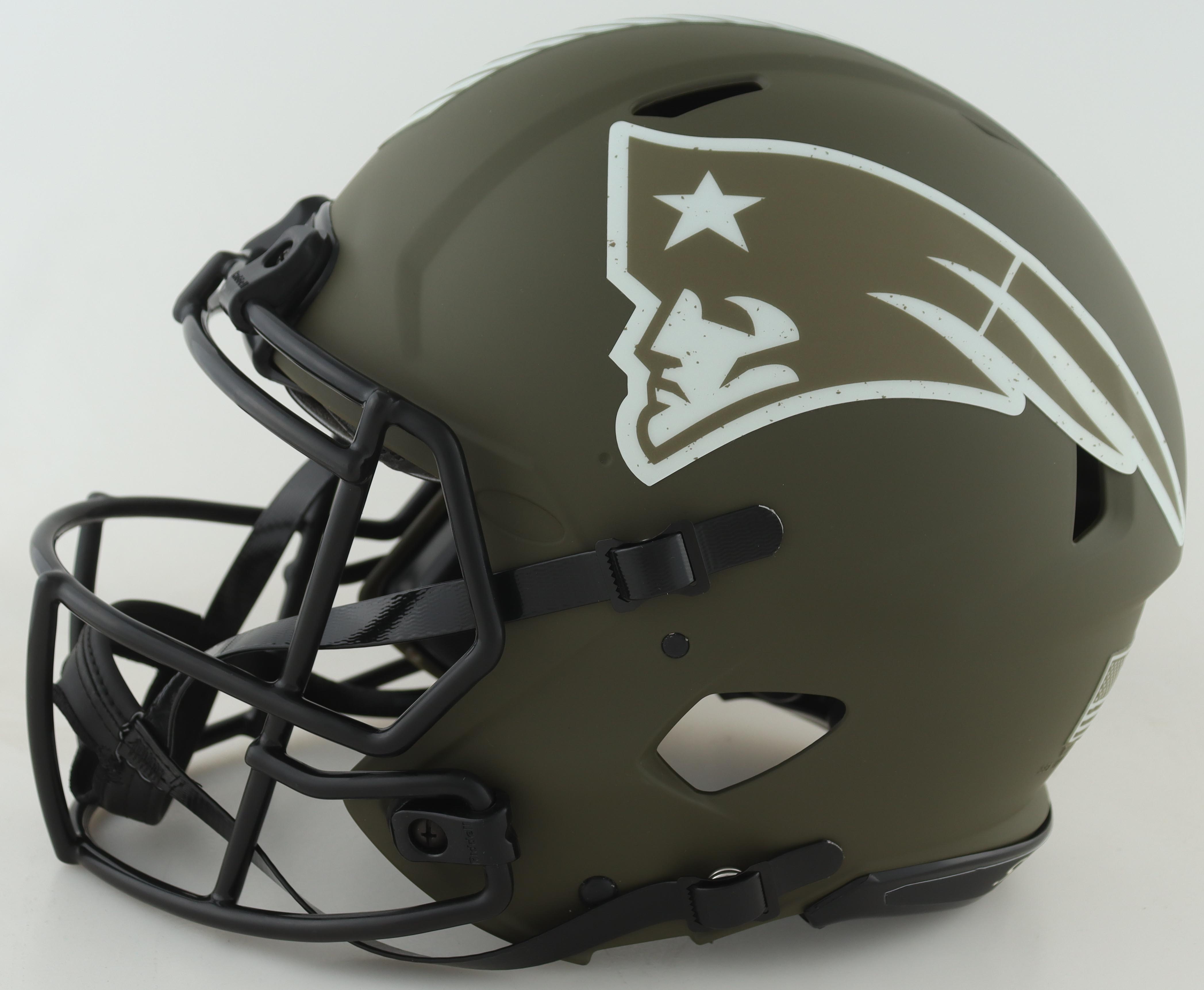 Riddell New England Patriots Full-Size Authentic On-Field Salute to Service Alternate Speed helmet. Hand-signed by Ty Law (HOF).