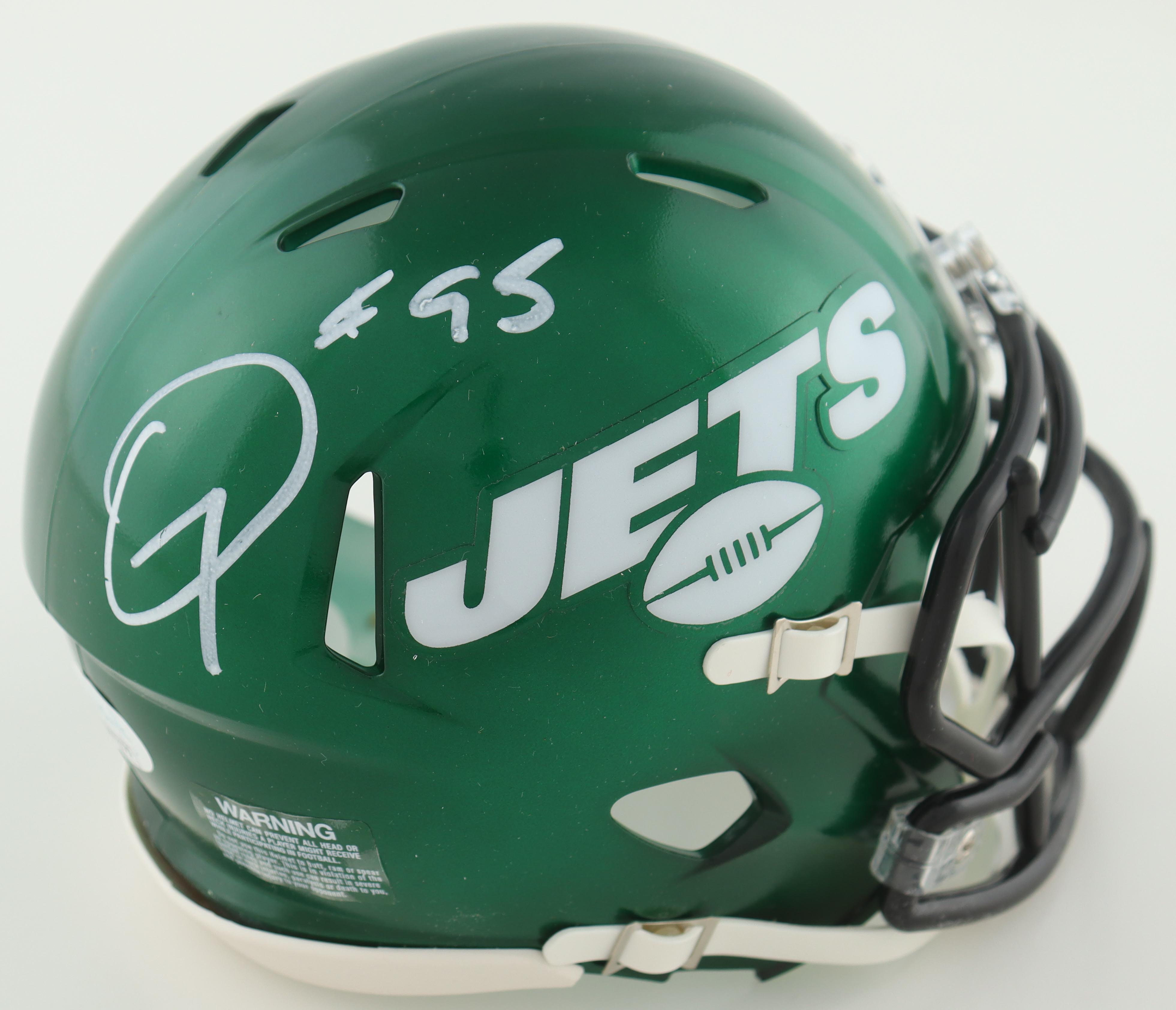 Riddell New York Jets Throwback Speed Mini Helmet has been hand-signed by Quinnen Williams.