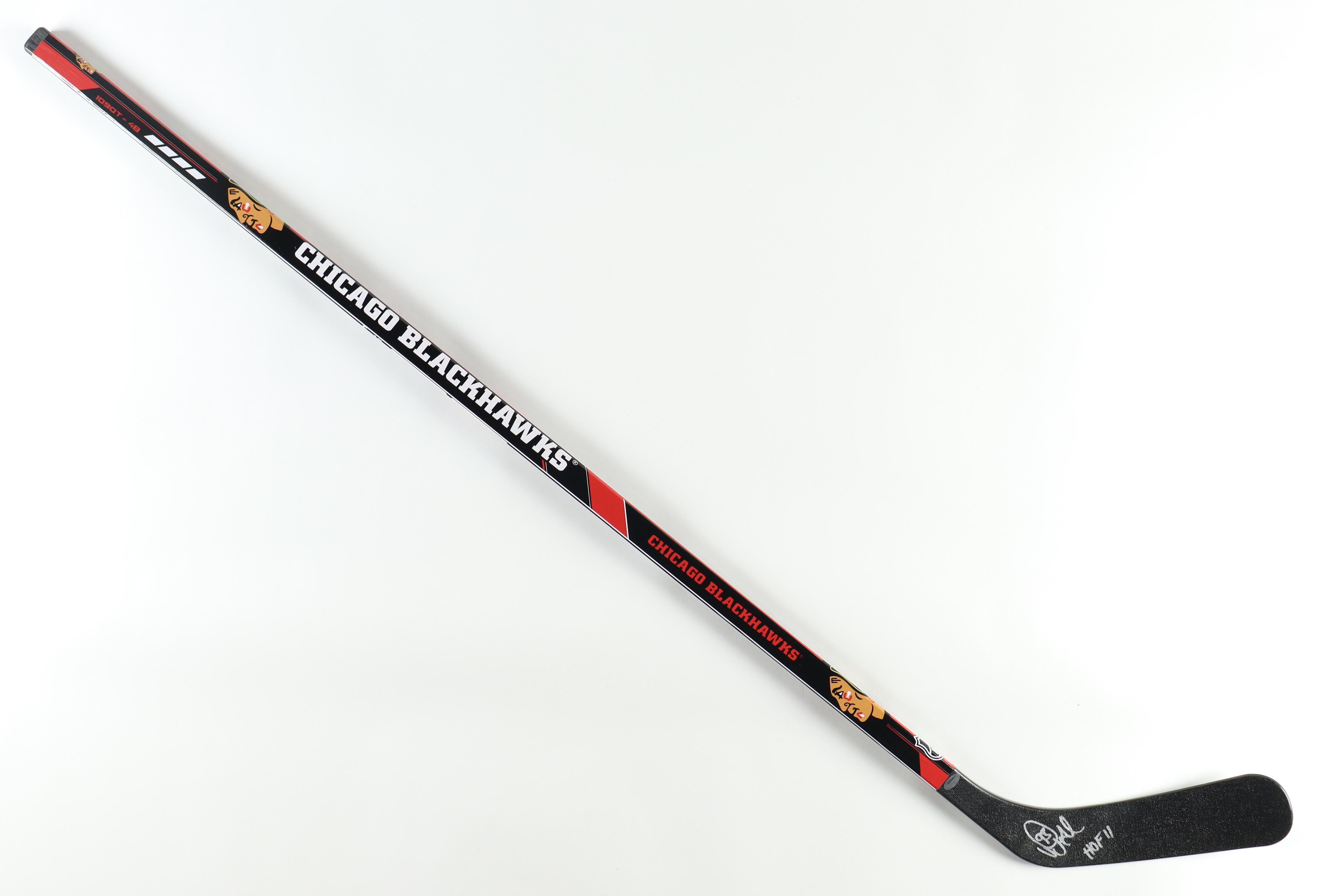 Doug Gilmour Signed Blackhawks Logo Hockey Stick Inscribed "HOF 11" (Schwartz)